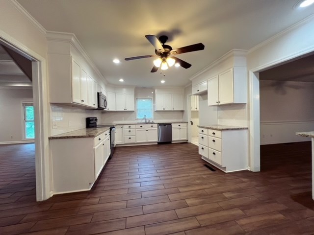 2 HOME PROPERTY, PRICE REDUCED-MOTIVATED SELLER! Brick Main Home is 2696 sq ft. Remodeled 4 BR/ 3.5 bath. Separate 2/2 Guest Home is 1502 sq ft. Both homes total 4199 sq ft. living space+ huge screen porch & 3 car garage. Large lot over. 2.194 acres. Main home sits off the paved road in a very private setting w/ mature landscape & a circular drive . Southern style executive living in a tranquil setting only minutes from Pine Hills Golf Community & shopping. As you enter the main home from the covered porch you step into a beautifully detailed living room w/ fireplace. Entering the dining room through double glass french doors you focus on the picture window overlooking the porch & back yard. Truly a entertainers dream! The home has an abundance of natural light that add to its beauty & open feeling. Custom ceilings/ moldings throughout, wood design tile flooring & updated neutral color pallet is perfect for any style. On the main floor is the luxurious primary suite. It features a fireplace & is joined by a spacious bath w/ freestanding soaking tub, double vanity, Lg open tile shower & walk in custom closet. Also, downstairs is the guest bedroom with a private full bath. Upstairs are 2 Lg Bedrooms, floored attic storage & 1 oversized full bath. Custom Kit. has stainless appliances, granite countertops, eat at bar and huge laundry room. The bar is open to the breakfast area & 22 x 21 family Rm. 18X15 screen porch has brick floor & is open to a brick courtyard/ covered patio, 3 care garage & the back yard. This area continues the flow for entertaining & is perfect for relaxing or enjoying nature. A short walk from the porch on open yard is the 2Br/2BA guest home 1500+- sf., with 2 porches & desirable split floor plan. Primary B/R has a walk in closet/full bath. Custom kitchen is open to Breakfast area w/ a bay window. Second BR off kit w/ full bath/ laundry room. Washer/ drier remain. Back yard does have fence that is not size of entire property.