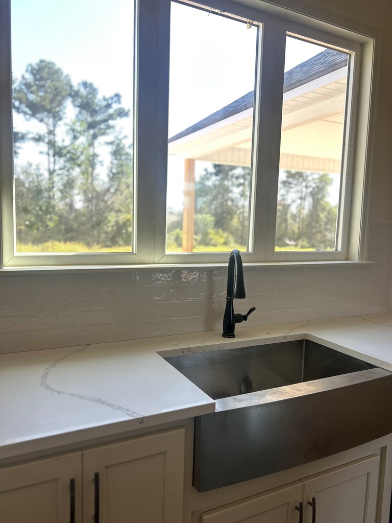 Come join the residents of Patriot's Point located in Lakeland, Ga. This community is located minutes to MAFB and the owners enjoy the perks of an in-ground pool with clubhouse. Pool is located a few short steps from the backyard of this home. Woods providing resident privacy. Beautiful four bedroom, oversized garage, two bath, situated on over a 1/2 acre lot. This home is ideal for the one that loves to entertain. Open floorplan providing the perfect gathering space. Beautiful windows allow for natural lighting while overlooking a private backyard. Great for the homeowner looking for a large lot while still enjoying the perks of a friendly neighborhood. With New Construction you will enjoy the benefits of a ONE YEAR HOME WARRANTY and Transferrable Termite Bond. Location qualifies for 100% financing. Seller will entertain closing cost concession with accepted offer.