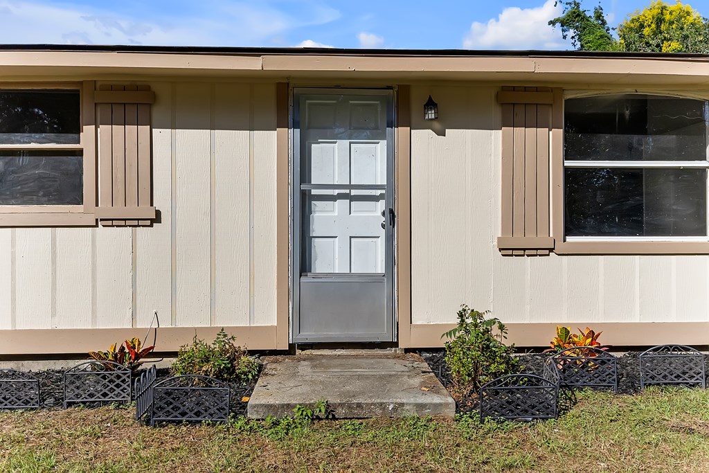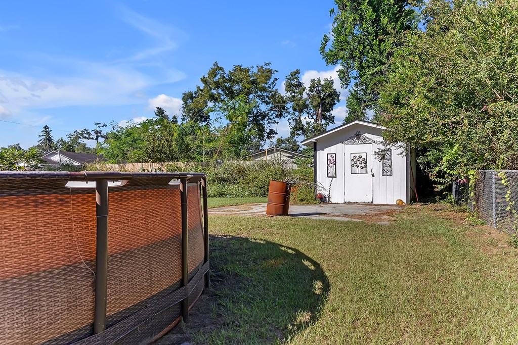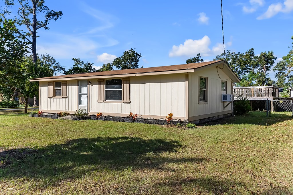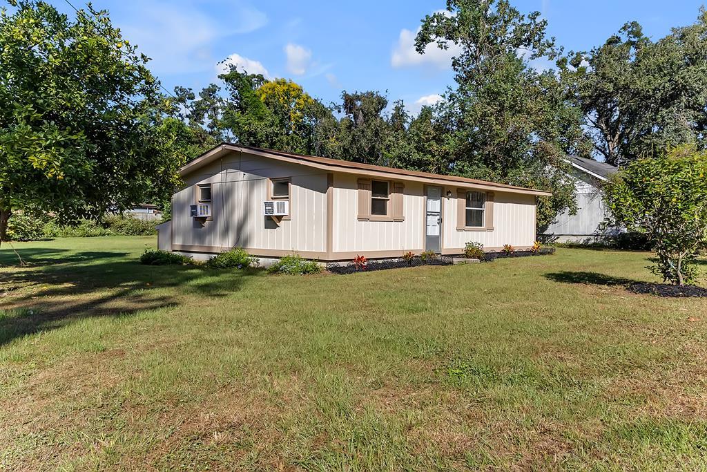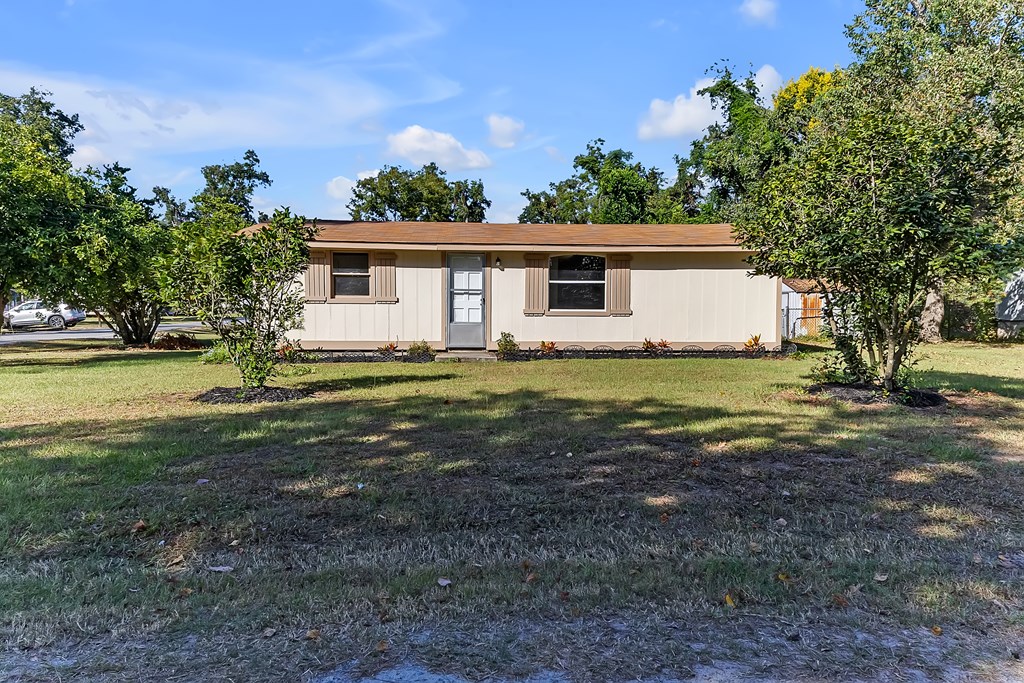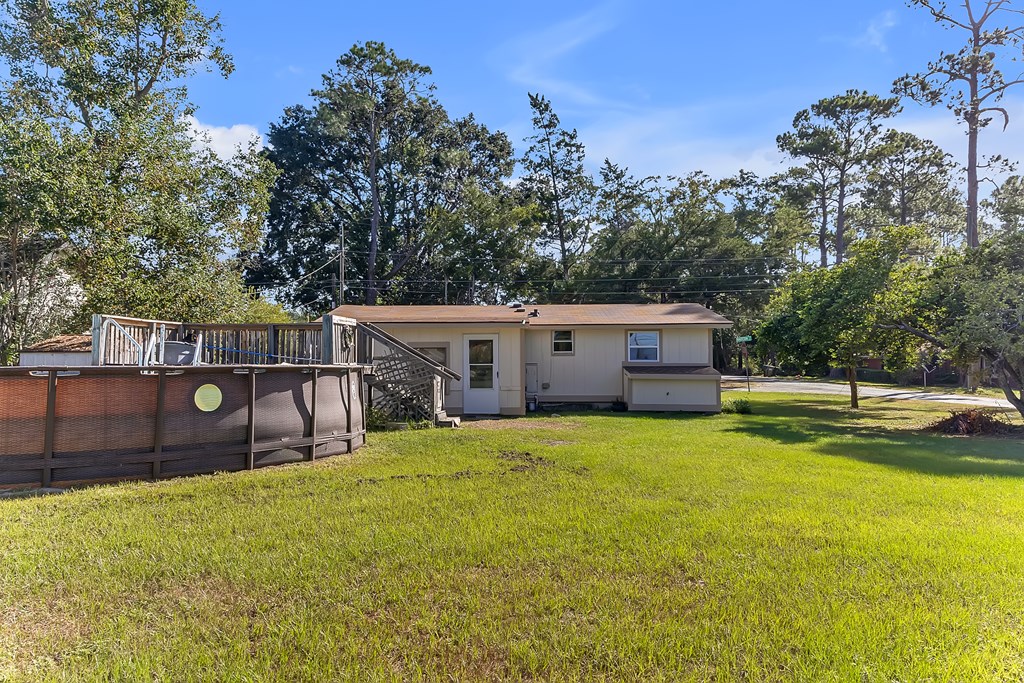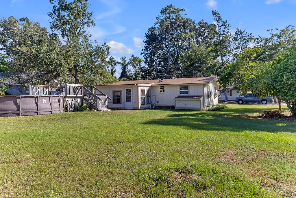This move-in ready home is located on a large corner lot and has many updates: new roof, flooring, bathroom, landscaping and more. The house has an open floor plan with a larger kitchen. Outside features: 3 year old above ground pool, two storage buildings, satsuma and fig trees. Enjoy your convenient location close to schools, shopping and near the airport.