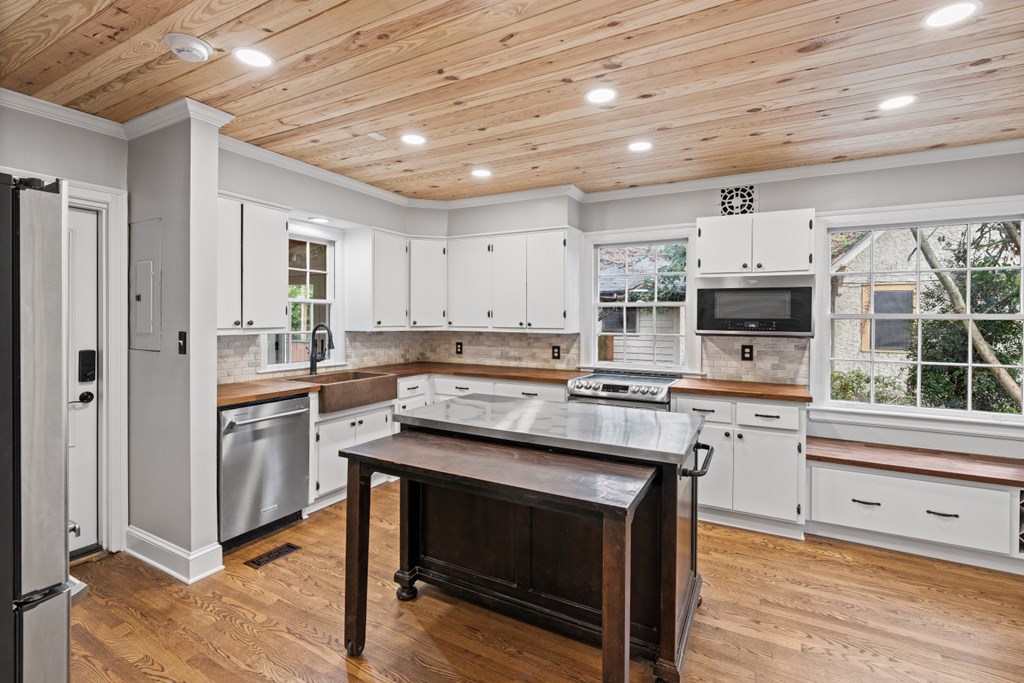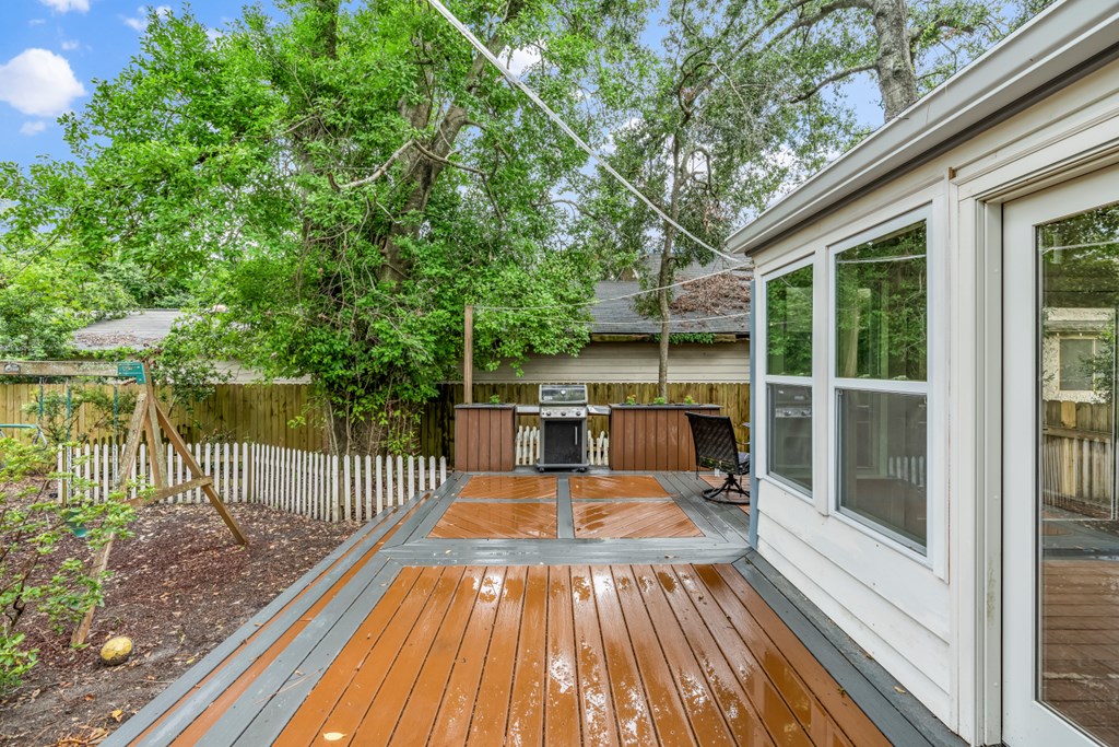 Welcome to wonderful Brookwood North Historic District! This lovely Southern Cottage style home built in 1941, has so many things to offer. First, character, charm and warmth is abundant. Quaint niches, a wood burning fireplace, and an interesting built in drafting table are just a few of the original features. The original oak hardwood flooring has been beautifully restored to a rich lustre. The owners have added a downstairs primary suite. A Free-standing tub and two waterfall showers with dual sinks and marble flooring tastefully updates the home. In addition, closets are cedar lined with shelves. Upstairs are two very large additional bedrooms, each with an ensuite bath, both completely renovated. Just off of the kitchen is a recently updated powder room, perfect when entertaining guests. The kitchen was updated as well, with a spacious island and wood countertops. For dining, there is a breakfast area as well as dining room, that would accommodate most tables. Toward the rear of the home, there is a enclosed porch which opens to the rear deck, where grilling and outdoor dining take place. The backyard is completely fenced and gated with plenty of space for rear yard parking. The roof of the home is a composite product that is a 70 year hurricane rated roof.