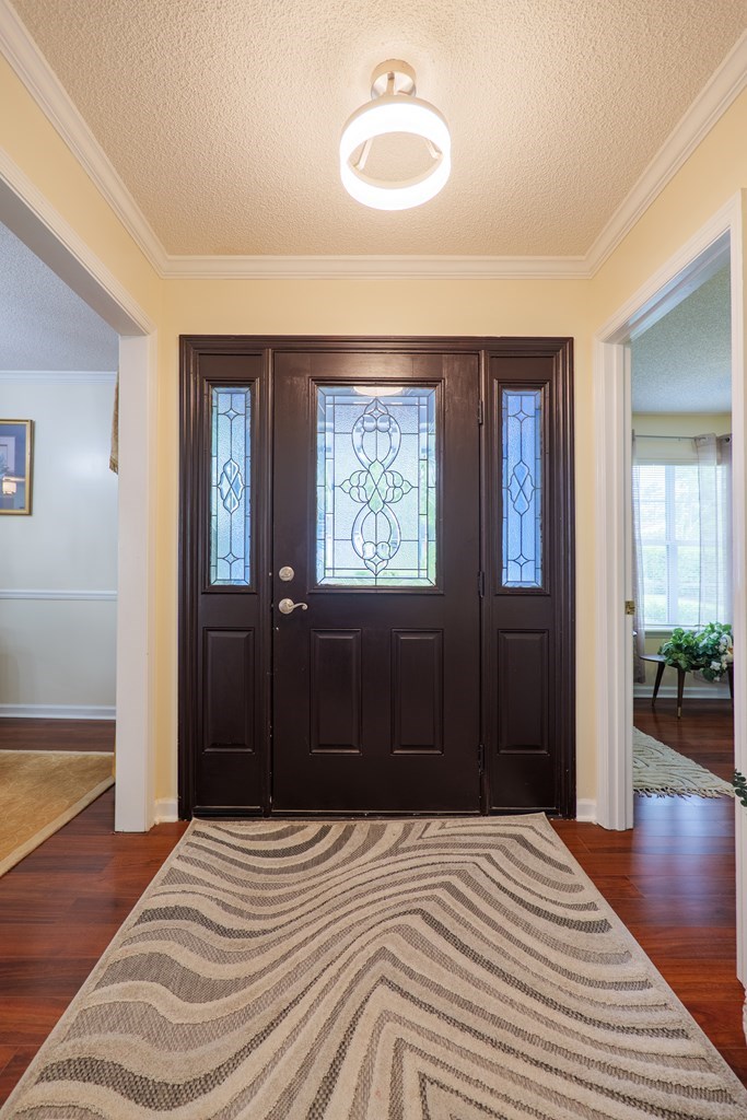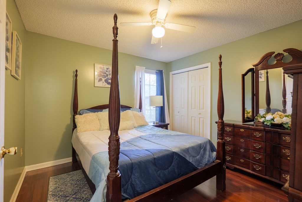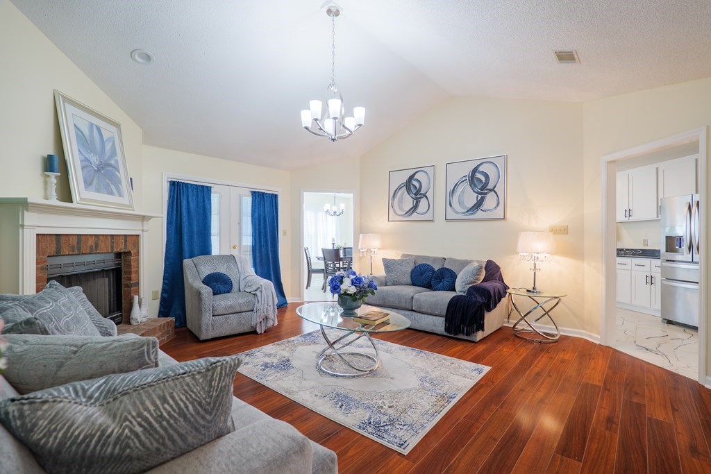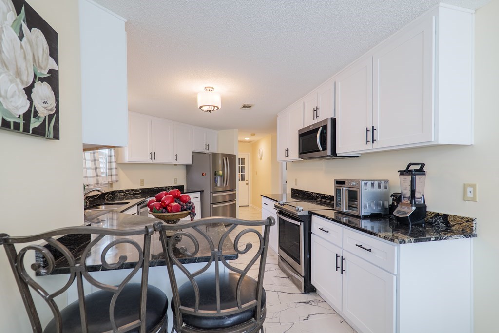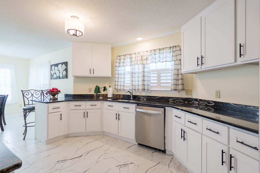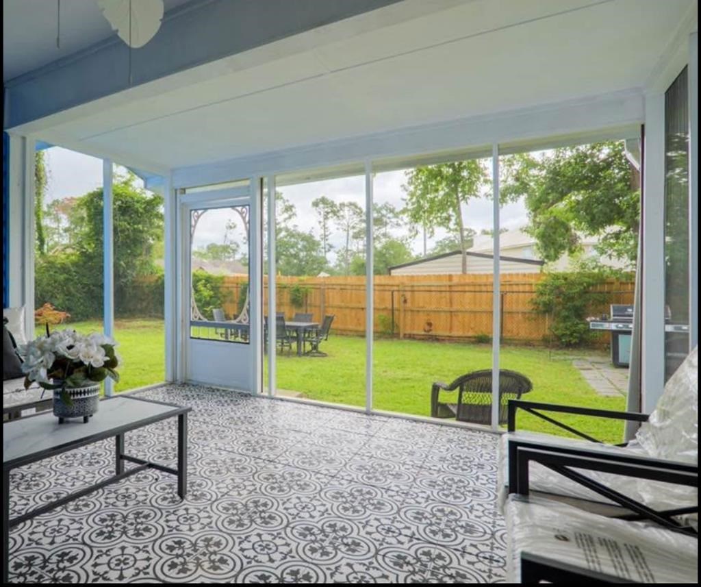 This beautifully renovated home awaits its new Homeowner. Take a look at the marble look Porcelain tile in kitchen, with black Granite counter tops, white newer cabinets with black handles and new appliances. Ceramic tile bathroom flooring and Granite counters awaits you in the bathrooms. All new lighting fixtures in kitchen, dining, living room, breakfast, entry, hallway and Primary bedroom. Your evenings can be relaxing on your screened in back patio with ceiling fans. MURAL on living room wall is NOT Paint it is cloth. This home is in pristine condition. Move in Ready. Located right inside of first entrance of New Wood Valley.