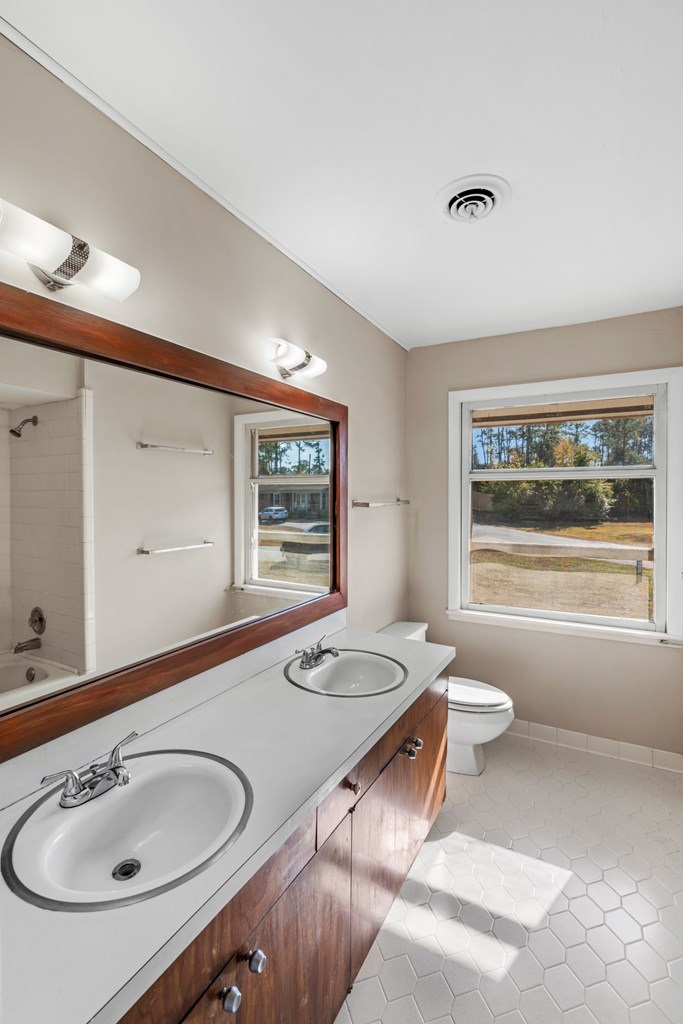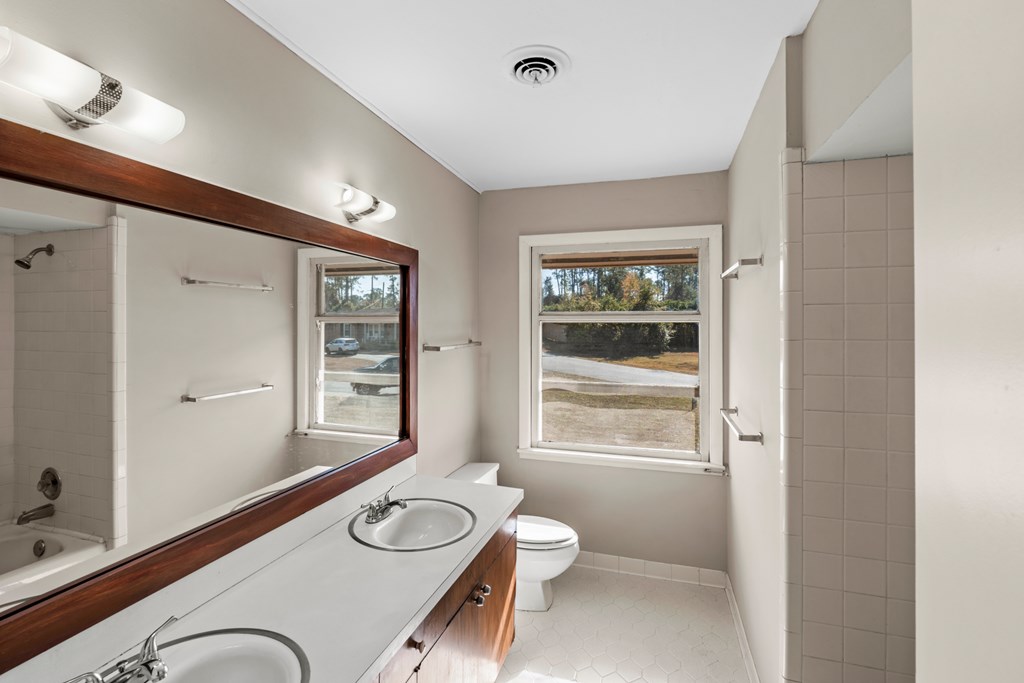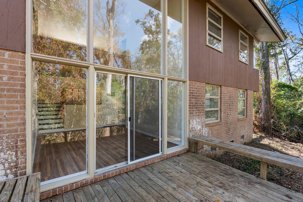 Welcome to 2446 Meadowbrook Drivean in-town Valdosta home with a retro-modern vibe, incredible privacy, and a one-of-a-kind floor plan you won't find anywhere else. Sitting on a .58-acre wooded lot, this split-level home was designed around its natural setting, offering multiple outdoor spaces and peaceful views of the creek below. The new roof and fresh interior paint make it move-in ready while still preserving the original architectural character from its 1979 build. Inside, the main level features a formal den with soaring 17-foot ceilings and a full wall of windows that pour in natural light and frame the trees behind the home. The kitchen, dining area, and bedrooms are all on this levelconvenient and functional for everyday living. Step out the back door to a large wooden deck overlooking the wooded hillside. With the natural elevation falling toward the creek, the backyard feels private, quiet, and tucked awayperfect for morning coffee, grilling, or simply enjoying the view. Upstairs, a second family room creates flexible space for a media room, playroom, office, or guest lounge. From here, walk out onto the expansive rooftop decka standout feature with long views through the trees. The seller even has plans and drawings for adding a roof over this space, offering the next owner an easy path to creating an incredible outdoor living area. If you've been looking for a home with personality, space, and privacy just minutes from everything in Valdosta, this one is a must-see. Big lot. New roof. Fresh paint. Unique design and peaceful views2446 Meadowbrook is ready for its next chapter.