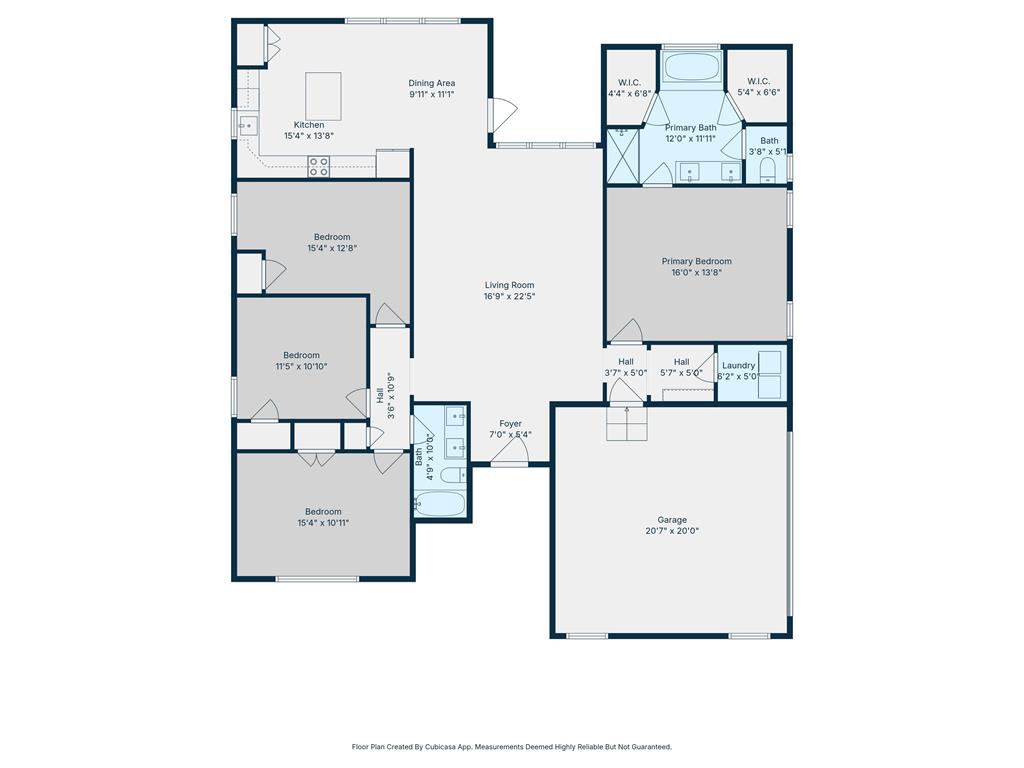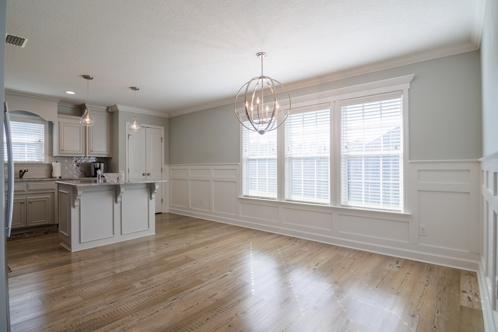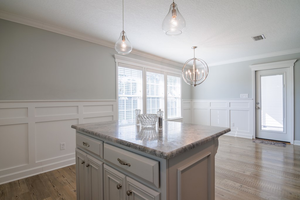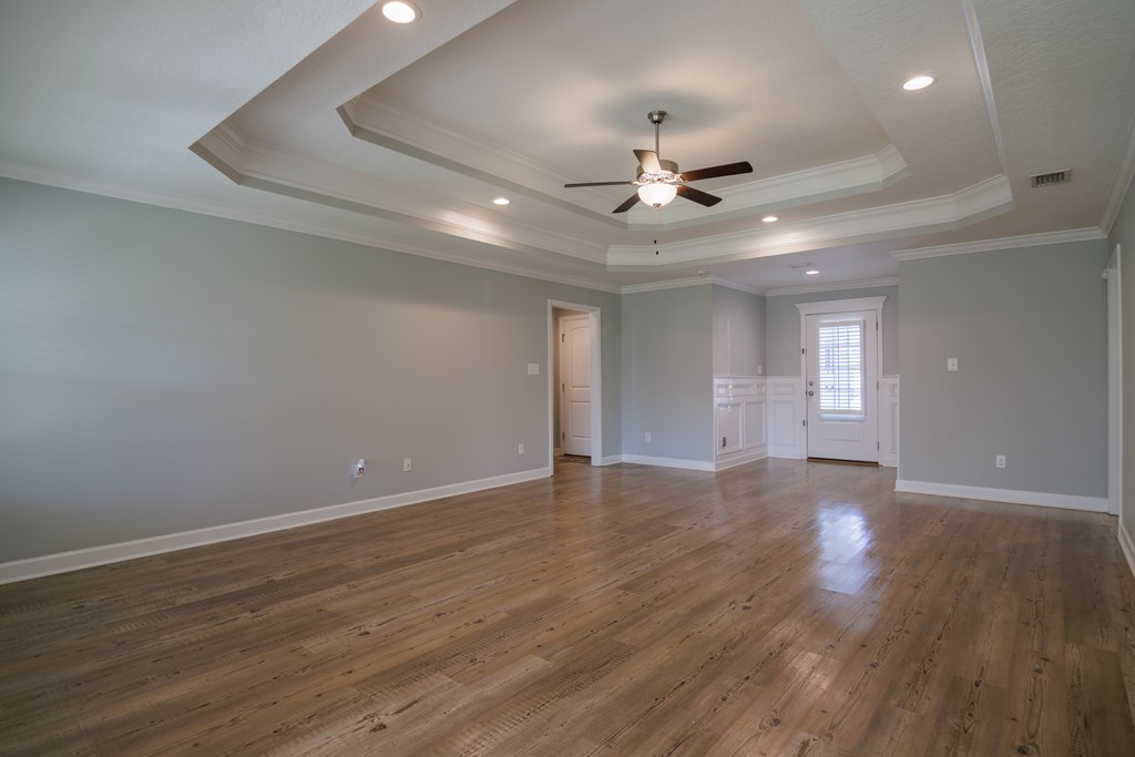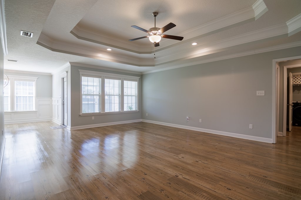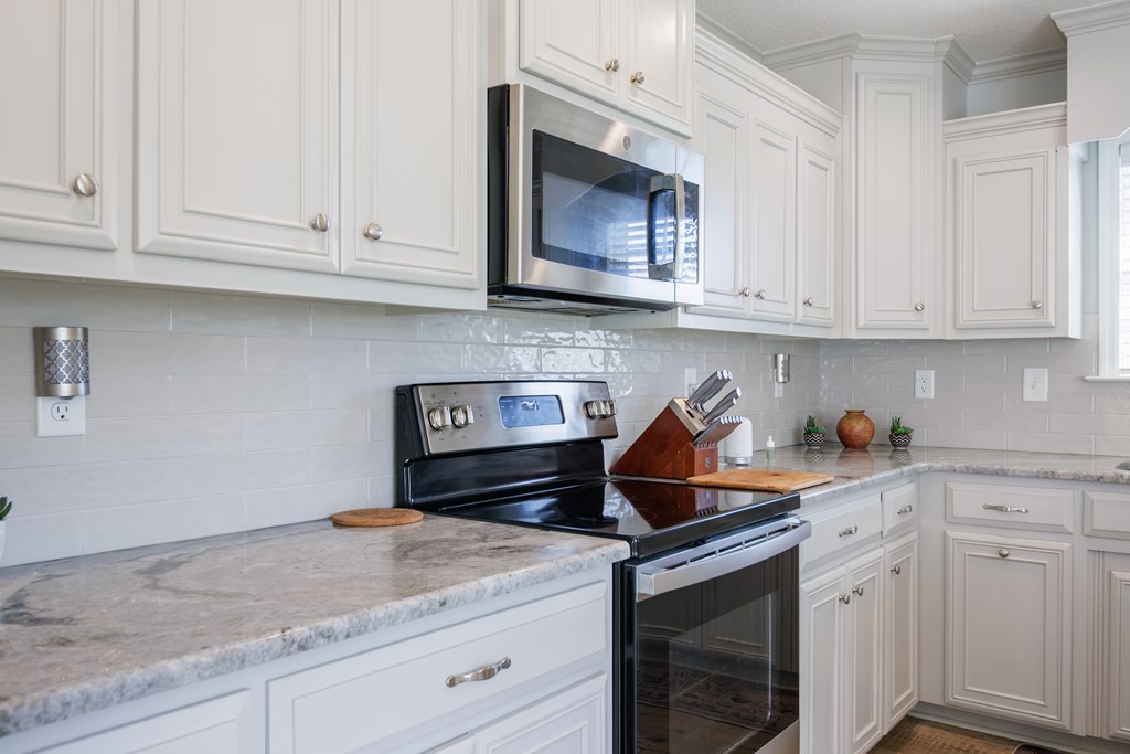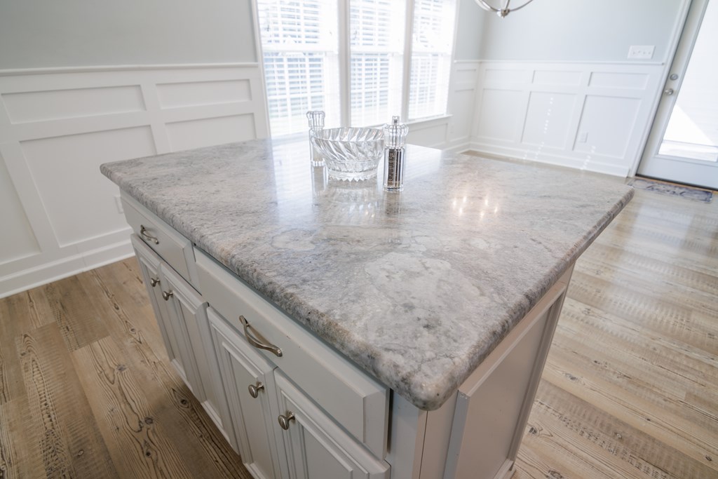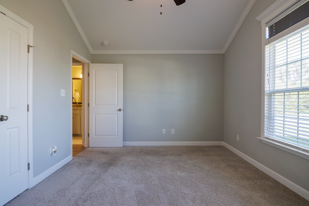 Four-bedroom, two-bath home in The Landing subdivision situated on a corner lot in Valdosta, Georgia. The kitchen features custom cabinets, granite countertops, under cabinet lighting, a tile backsplash, and stainless steel appliances including the refrigerator. The primary suite offers double vanities, his and her closets, a tiled shower, and a jetted soaking tub. Blinds are installed throughout with a plantation shutter on the front door. Luxury vinyl plank flooring runs through the main living areas, with carpet in the bedrooms and tile in the bathrooms. This beautiful HAHIRA home qualifies for 100 percent USDA financing for eligible buyers and is located in one of the area's most desirable neighborhoods. Measurements were taken by CubiCasa floor plan scan.