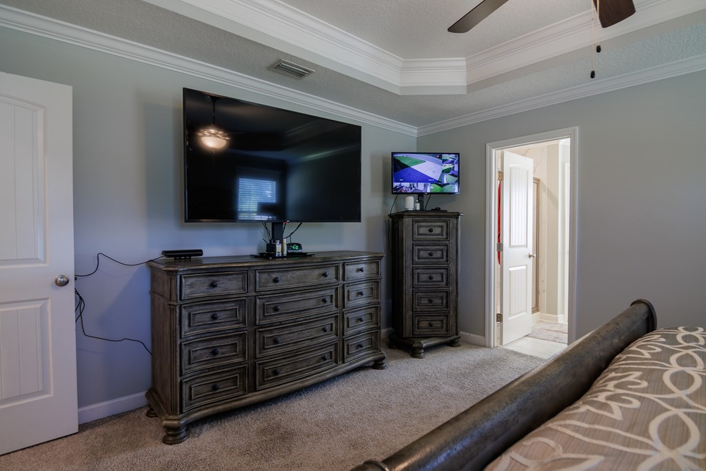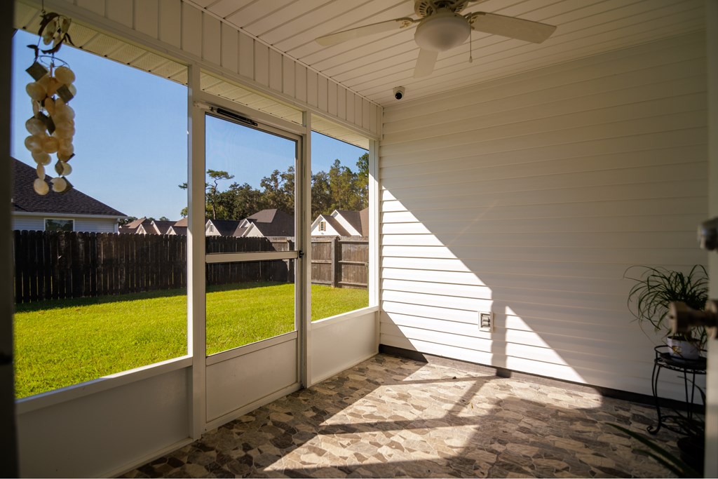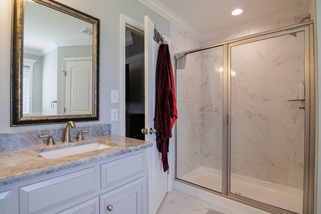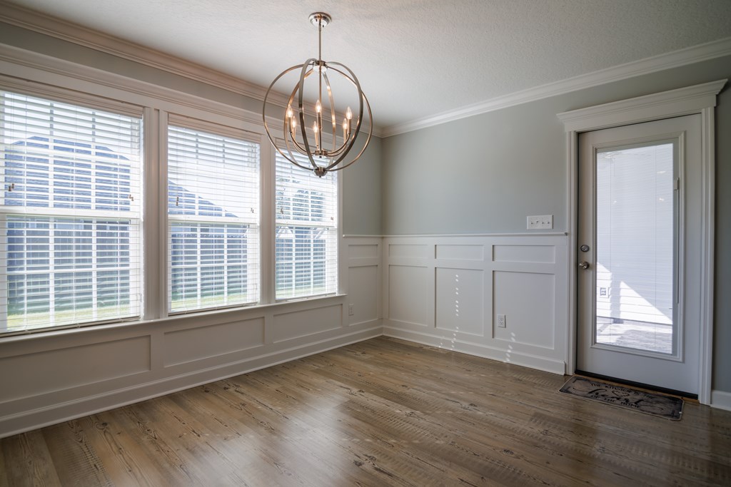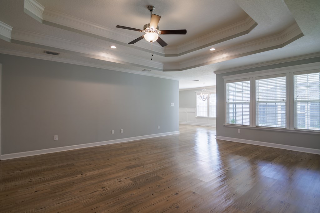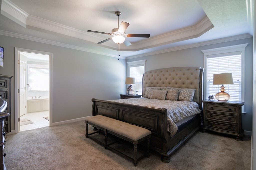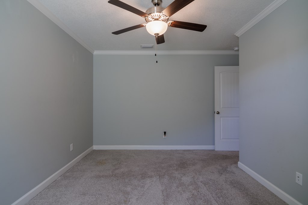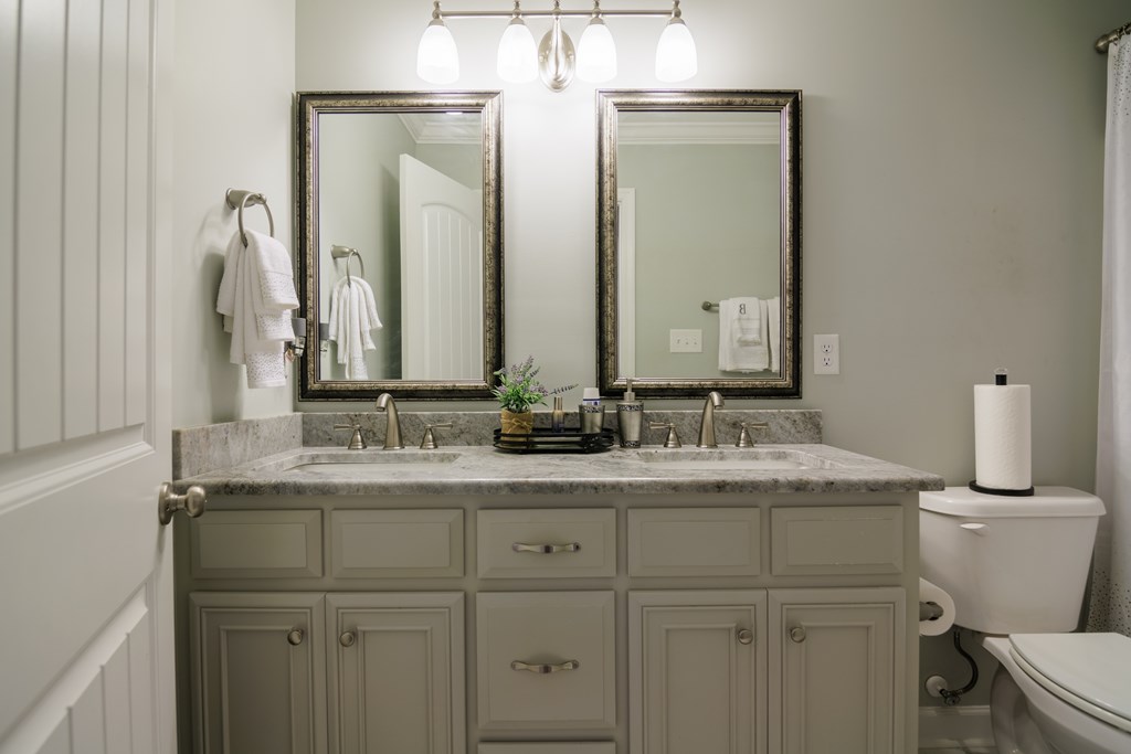 Four-bedroom, two-bath home in The Landing subdivision situated on a corner lot in Valdosta, Georgia. The kitchen features custom cabinets, granite countertops, under cabinet lighting, a tile backsplash, and stainless steel appliances including the refrigerator. The primary suite offers double vanities, his and her closets, a tiled shower, and a jetted soaking tub. Blinds are installed throughout with a plantation shutter on the front door. Luxury vinyl plank flooring runs through the main living areas, with carpet in the bedrooms and tile in the bathrooms. This beautiful HAHIRA home qualifies for 100 percent USDA financing for eligible buyers and is located in one of the area's most desirable neighborhoods. Measurements were taken by CubiCasa floor plan scan.