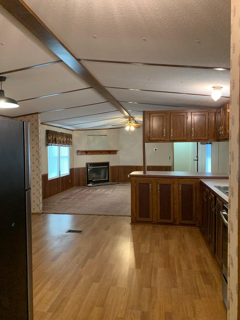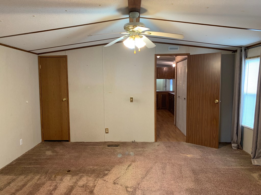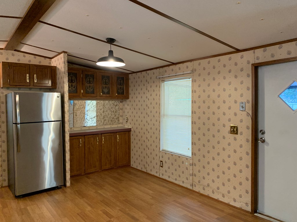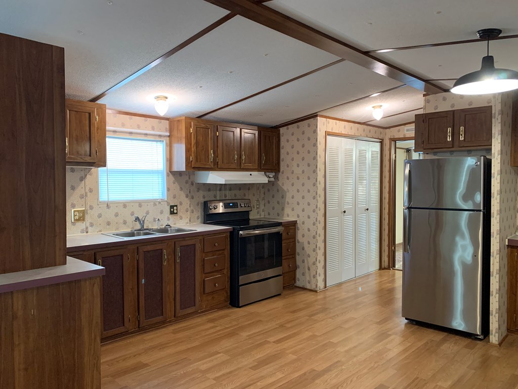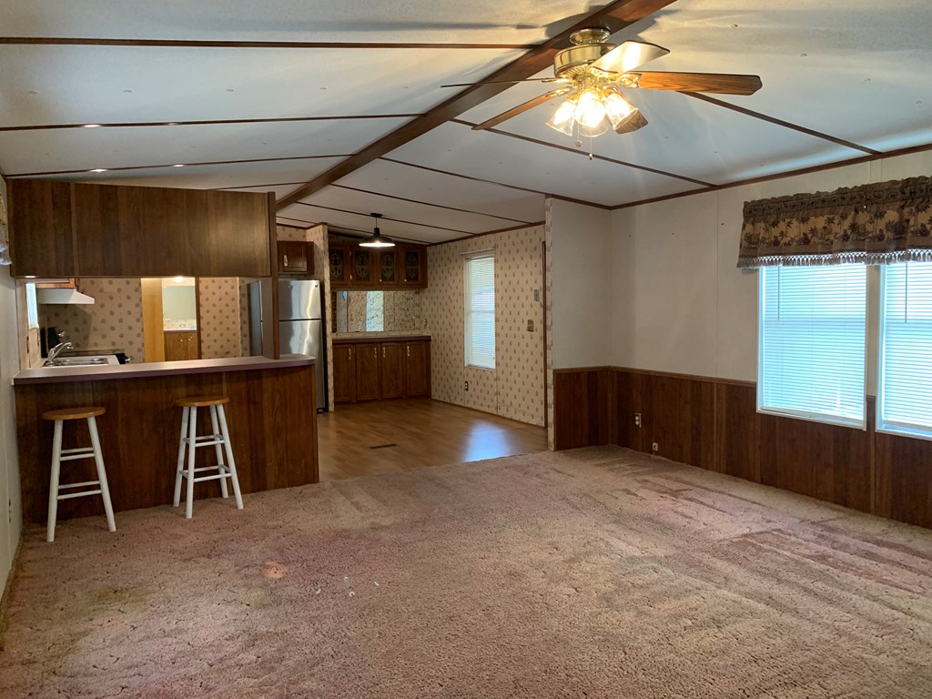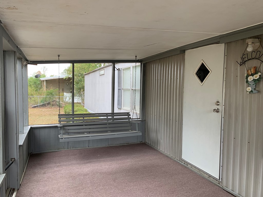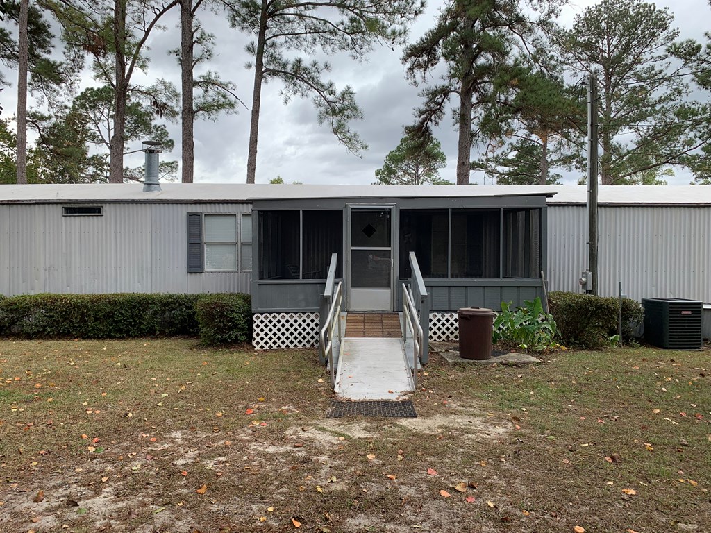 2 bedroom/ 2 bath mobile home with a partially fenced lot and a screen porch. It does have a handicapped accessible ramp in the back. Approximate sqft is 1216, and it has a septic tank but community water. This property also includes all appliances along with a washer and dryer. This home has been professionally cleaned and pressure washed and ready for its new owner. It has been retired to the land. SOLD AS-IS
