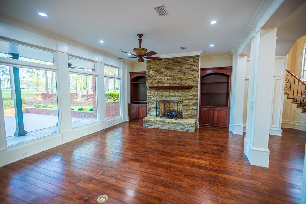 Stunning Custom Brick Home nestled in a prime location with sweeping views of a picturesque golf course and serene pond, this amazing home offers timeless elegance and modern comfort. Step through the grand entrance into a bright, open space where large windows flood the home with natural light. The downstairs boasts generous room sizes, including a living room with a cozy fireplace, a formal dining room, and a private study/office. The gourmet kitchen features a charming breakfast area, perfect for hosting gatherings. The master suite is a private sanctuary, complete with its own fireplace, a spa-like bathroom with a fully tiled walk-in shower and a large jacuzzi tub, and custom-built closets with thoughtful built-ins for added convenience. A spiral staircase leads to the upper level, where you'll find a spacious game room/family room, a bright sunroom with large windows, and an outdoor sun deck overlooking the golf course and pond. Two additional oversized bedrooms each offer access to bathrooms, ensuring comfort and privacy for guests. Elegant details like crown molding, tall ceilings, and timeless light fixtures enhance the home's refined charm. Recent upgrades include a brand-new roof, fresh interior paint, and manicured landscaping. A circular driveway leads to a 2-car garage plus a third garage with a new mini-split AC ideal for a workout room, golf simulator, workshop, or golf cart bay. The outdoor patio provides the perfect spot to relax and enjoy the peaceful surroundings. Located in the prestigious Kinderlou Forest, a 24/7 gated community, residents enjoy top-tier amenities, including two community pools, two fitness centers, pickleball/tennis courts, the Oaks restaurant, fishing ponds, playgrounds, and scenic walking trails. This home sits on one of the best lots in Kinderlou, combining luxury, privacy, and breathtaking views. Don't miss out on this Rare opportunity! Copy and Paste video link for a tour https://www.youtube.com/watch?v=yIUsjAUiTIE.