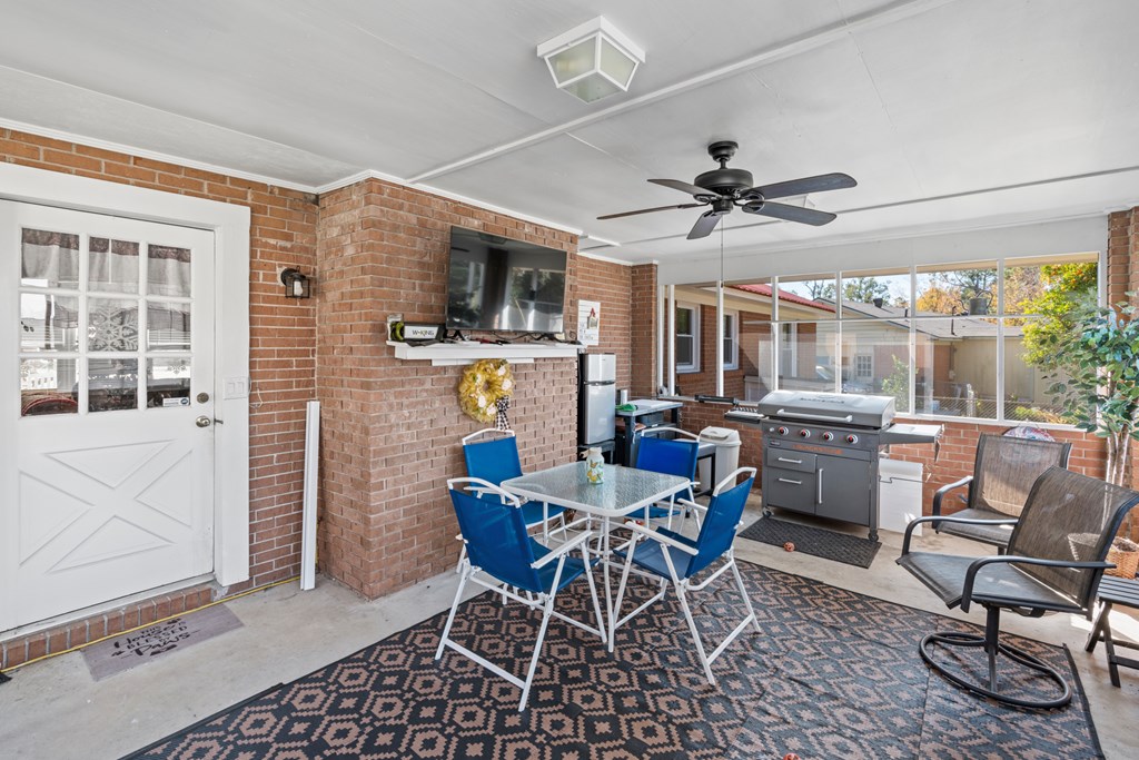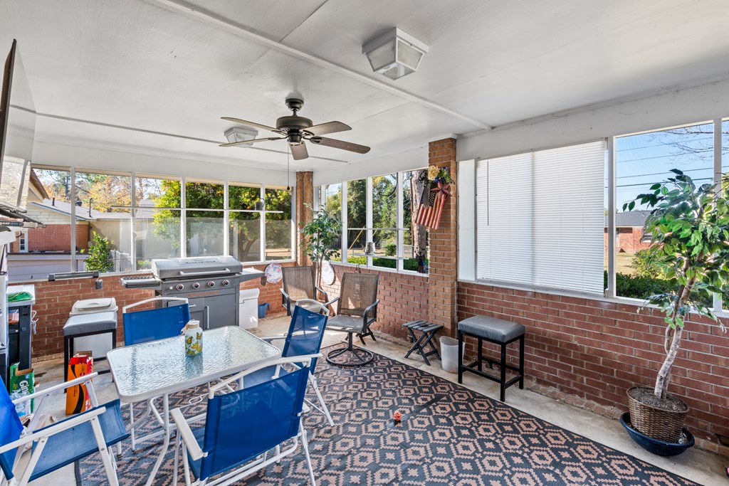 Beautifully Updated Brick Ranch with Outdoor Living & Low Utility Costs!Pride of ownership is evident throughout this charming 3-bedroom, 2-bath brick ranch, perfectly situated on a spacious, fenced lot. Thoughtfully updated and meticulously maintained, this home offers peace of mind with major improvements completed just three years ago?including all windows, doors, electrical, and plumbing.Inside, you?ll find a welcoming layout featuring a formal dining room for gatherings and a cozy fireplace already converted to propane (just connect your tank?fixtures and lines are in place, with natural gas also available). The kitchen is equipped with a convenient on-demand water heater for added efficiency.Step outside and enjoy true Southern living on the large screened-in porch?perfect for relaxing or entertaining. The backyard is a private retreat with mature fruit trees, plenty of space to garden or play, and two wired storage buildings?one complete with a workbench and shelving.Additional highlights include a durable metal roof, whole-home generator, carport, and NO HOA fees. Utility costs are a standout feature with water and sewer averaging just $160 every two months and electricity approximately $175/month. Enjoy free TV with 37 channels via an outdoor antenna?keeping monthly expenses low without sacrificing comfort.This move-in ready home combines charm, updates, and efficiency?making it a rare find you don?t want to miss!