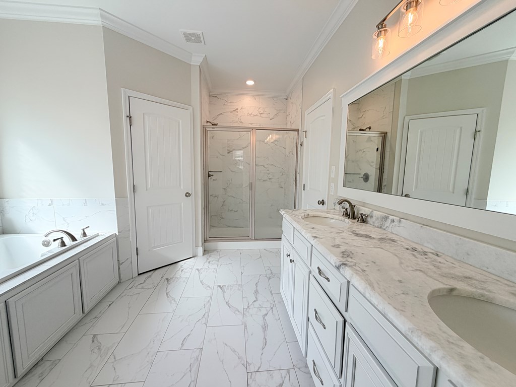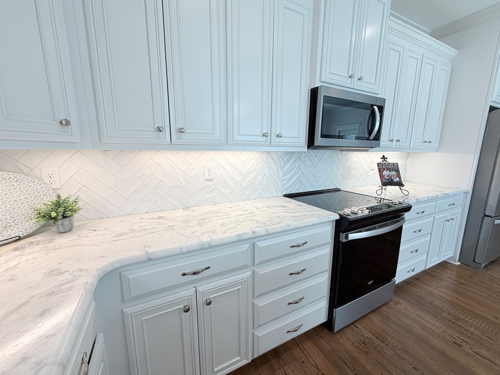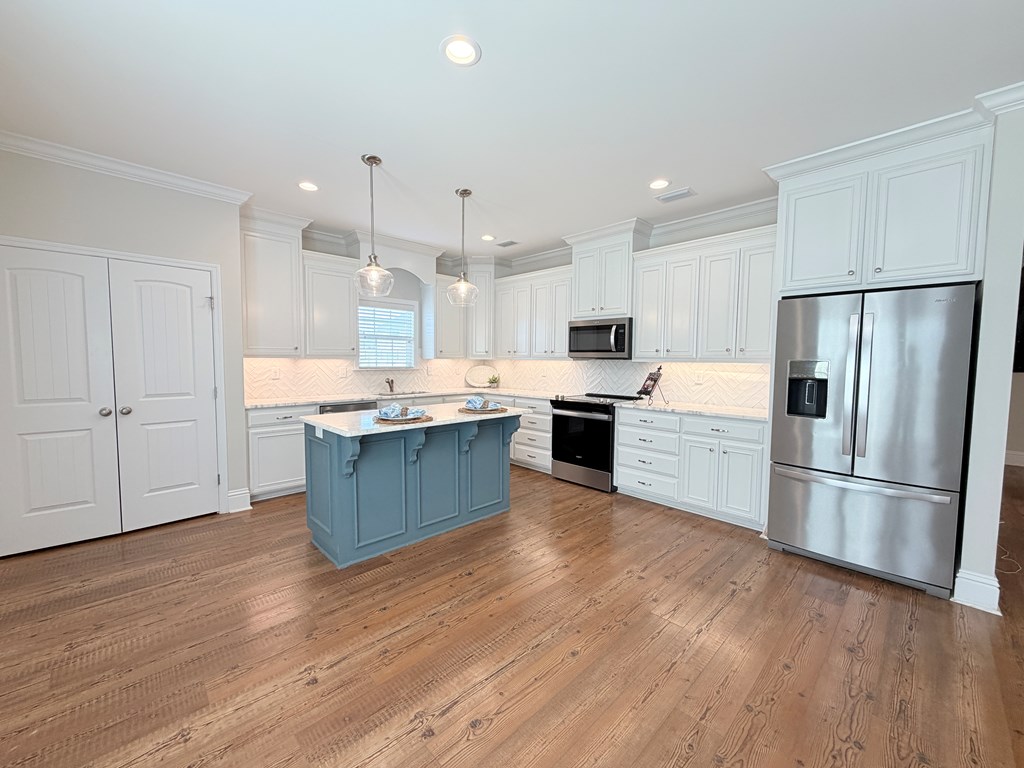 FOUR BEDROOM - THREE FULL BATHS IN THE LANDINGS SUBDIVISION ON THE WATER! Kitchen complete with custom cabinets, granite counter tops, tiled backsplash and stainless appliances including refrigerator. Master Bathroom complete with double vanity, his and her closets, tiled shower and jetted tub! Blinds on windows including plantation shutter on front door. Property qualifies for 100% USDA financing to qualified buyers.