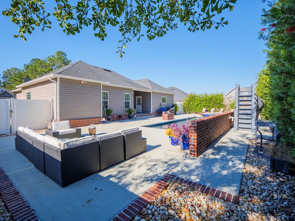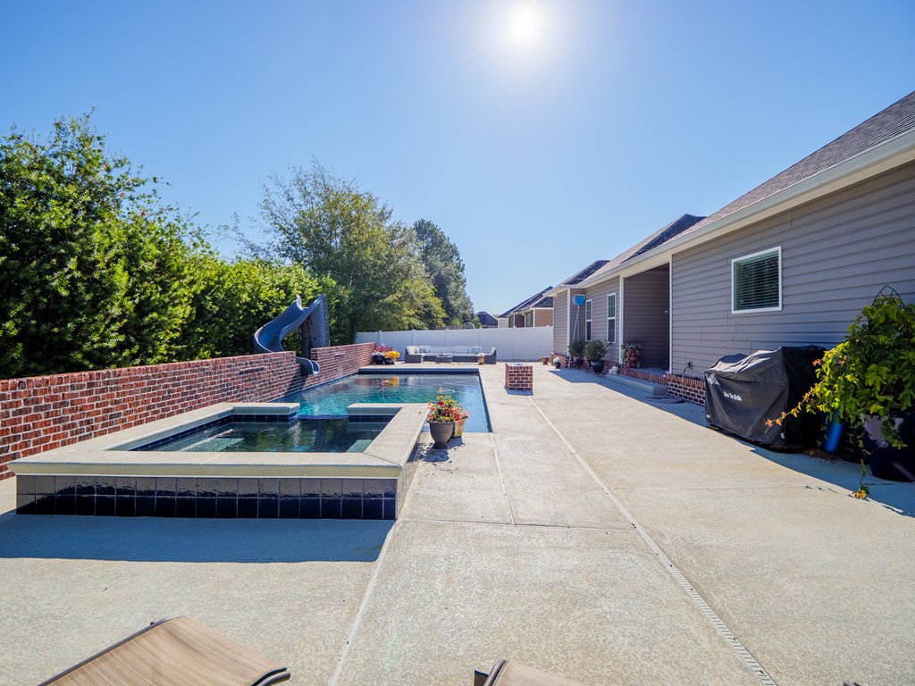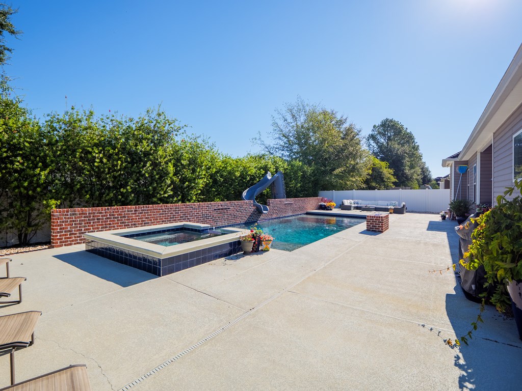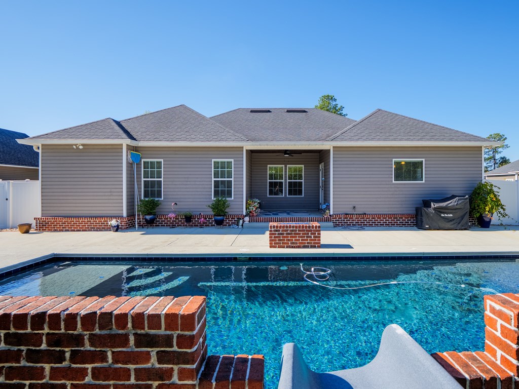Welcome to this stunning 4-bedroom, 3-bath home with POOL! Perfectly located within 5 minutes of Moody Air Force Base and North Valdosta! This property offers the perfect blend of comfort, convenience, and outdoor living.Step inside to an open-concept floor plan with split bedrooms for added privacy. The kitchen features granite countertops, ample cabinet space, and a spacious layout that flows seamlessly into the dining and living areasideal for entertaining or everyday life. The primary suite is a retreat of its own, boasting a large walk-in closet, dual vanity, and a luxurious walk-in shower. Each additional bedroom is generously sized with beautiful finishes throughout the home. Home offers on demand hot water, 5k bathroom remodel, gutter system with lifetime warranty and garbage disposal! You will love the bidet in primary suite. Step outside to your private backyard oasis! Enjoy the saltwater pool complete with remote controlled hot tub, tanning ledge, water features, and a slideperfect for fun and relaxation. Buried propane tank! Gather with friends around the fire pit and unwind under the stars. This home is well-maintained, move-in ready, and showcases tasteful colors throughout. New AC compressor 2025! Conveniently located close to shopping, dining, and schools! This home truly checks all of your boxes!