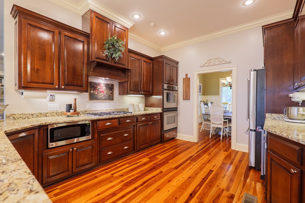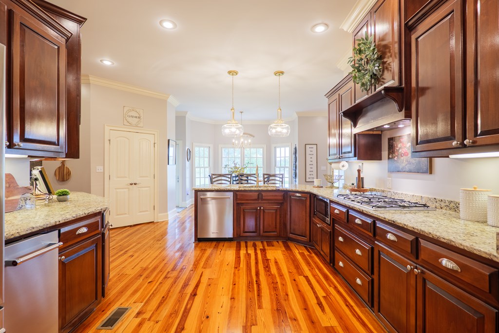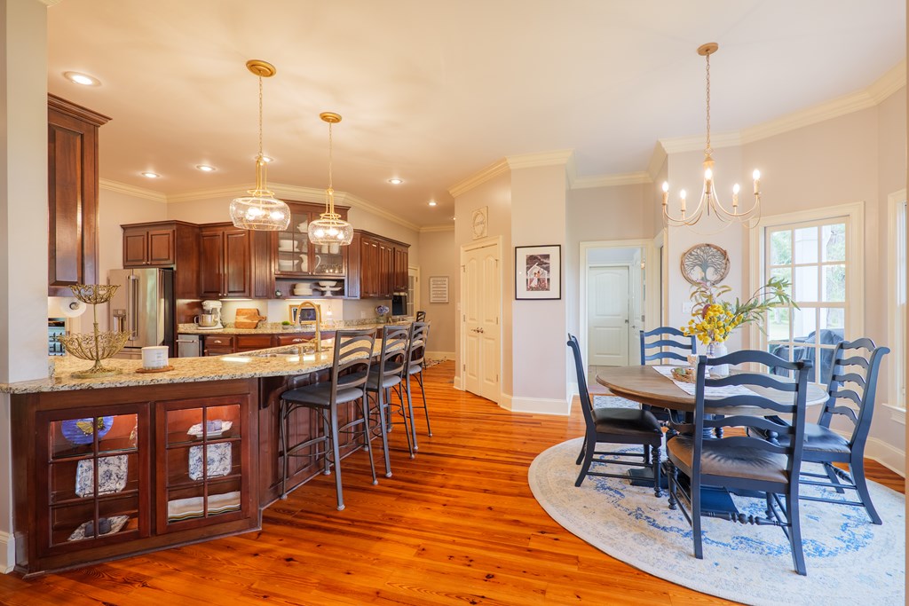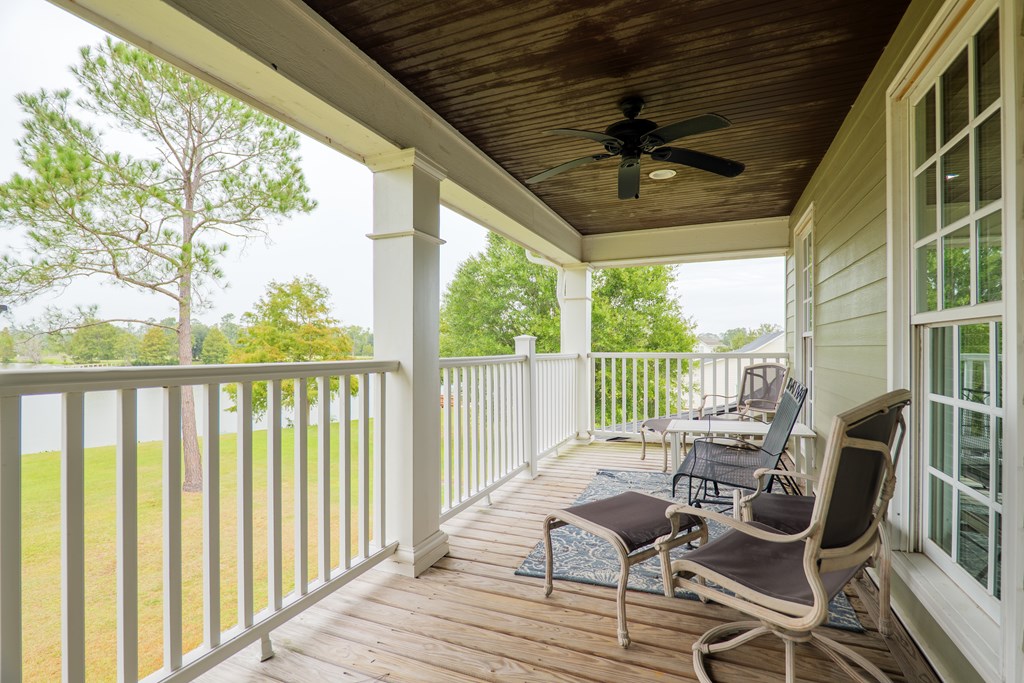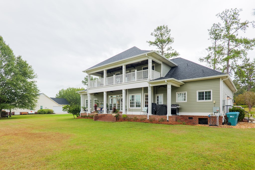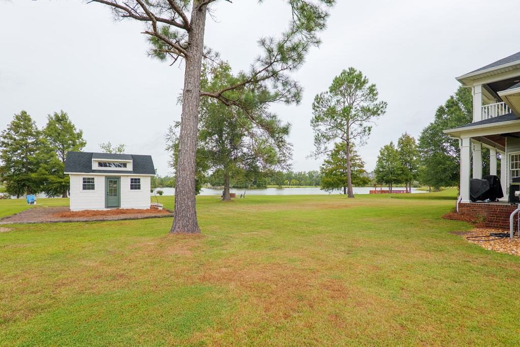 Custom waterfront retreat in McMullen Estates Beneath the shade of mature trees and overlooking a private pond, this custom two-story home delivers Southern charm with modern comforts. Built in 2006 on 2.23 acres, it offers 3,832 sq ft with five bedrooms and three baths. Heart-pine floors sweep through the main level, leading to an open living area anchored by a fireplace and breakfast nook. The kitchen is built for cooks and gatherings, with generous cabinetry, a walk-in pantry and granite counters. The main-level owner's suite adds privacy and convenience with dual closets and a bath featuring a soaking tub and walk-in shower, plus an adjacent bedroom, office, study, or nursery. Upstairs are three additional bedrooms, each with walk-in closets, along with a large entertainment or media room and walk-around attic storage. Outdoor living is a highlight. Relax on the deep front porch, covered back porch or the second-story balcony that overlooks the pond. Two tankless water heaters support the home. The property includes a two-car attached garage, durable cement siding, an architectural shingle roof, thermopane windows, well water and septic system. Appliances include a dishwasher, gas cooktop and a separate ice maker. Separate workshop.