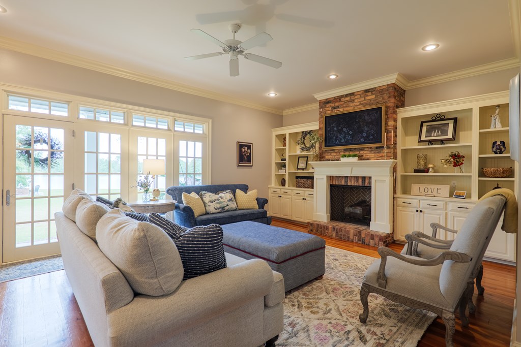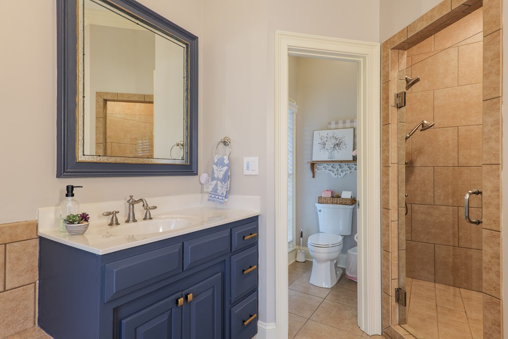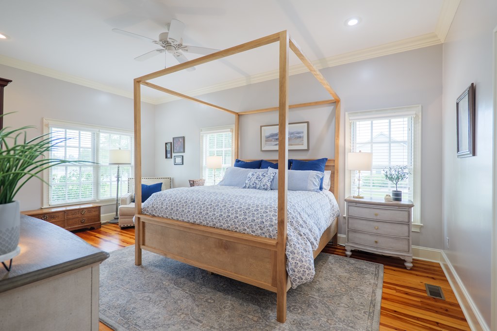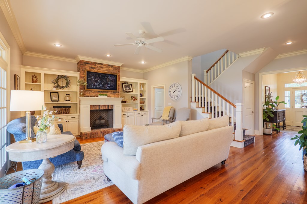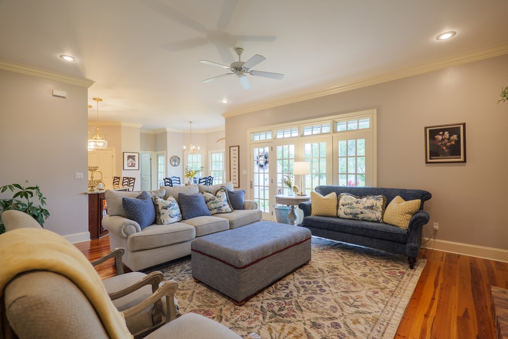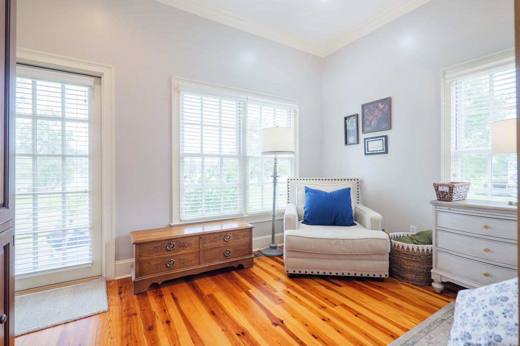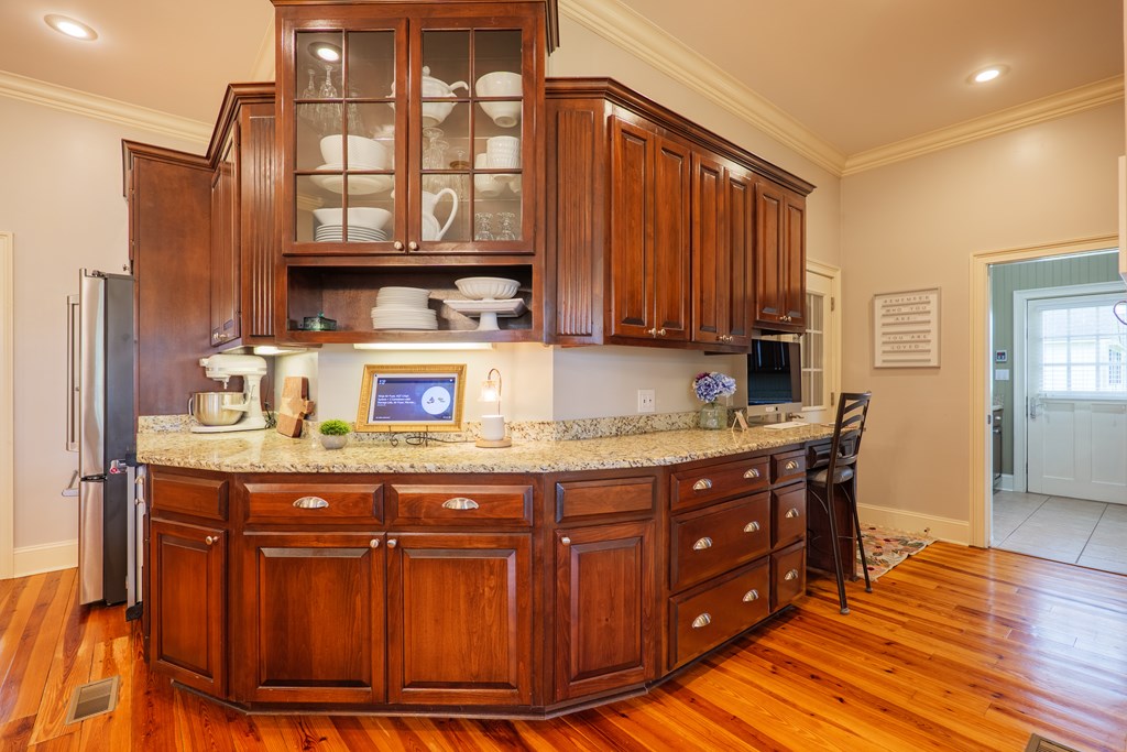 Custom waterfront retreat in McMullen Estates Beneath the shade of mature trees and overlooking a private pond, this custom two-story home delivers Southern charm with modern comforts. Built in 2006 on 2.23 acres, it offers 3,832 sq ft with five bedrooms and three baths. Heart-pine floors sweep through the main level, leading to an open living area anchored by a fireplace and breakfast nook. The kitchen is built for cooks and gatherings, with generous cabinetry, a walk-in pantry and granite counters. The main-level owner's suite adds privacy and convenience with dual closets and a bath featuring a soaking tub and walk-in shower, plus an adjacent bedroom, office, study, or nursery. Upstairs are three additional bedrooms, each with walk-in closets, along with a large entertainment or media room and walk-around attic storage. Outdoor living is a highlight. Relax on the deep front porch, covered back porch or the second-story balcony that overlooks the pond. Two tankless water heaters support the home. The property includes a two-car attached garage, durable cement siding, an architectural shingle roof, thermopane windows, well water and septic system. Appliances include a dishwasher, gas cooktop and a separate ice maker. Separate workshop.