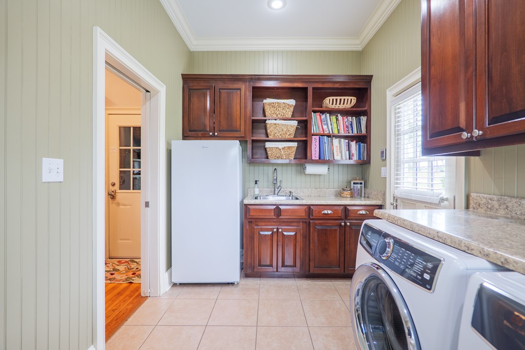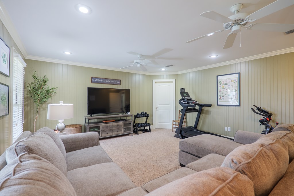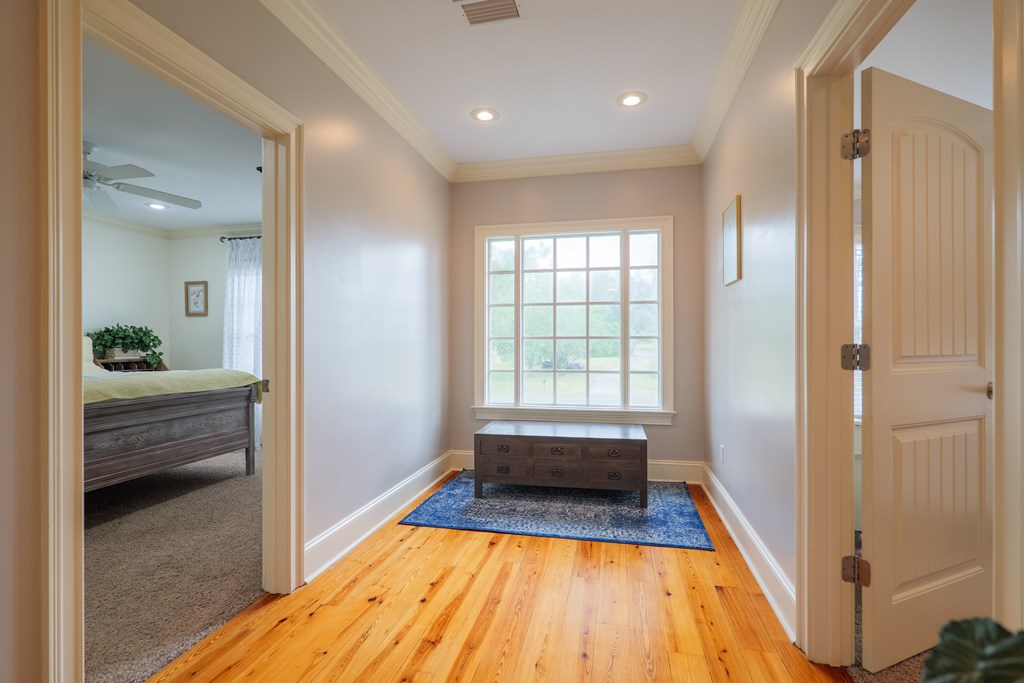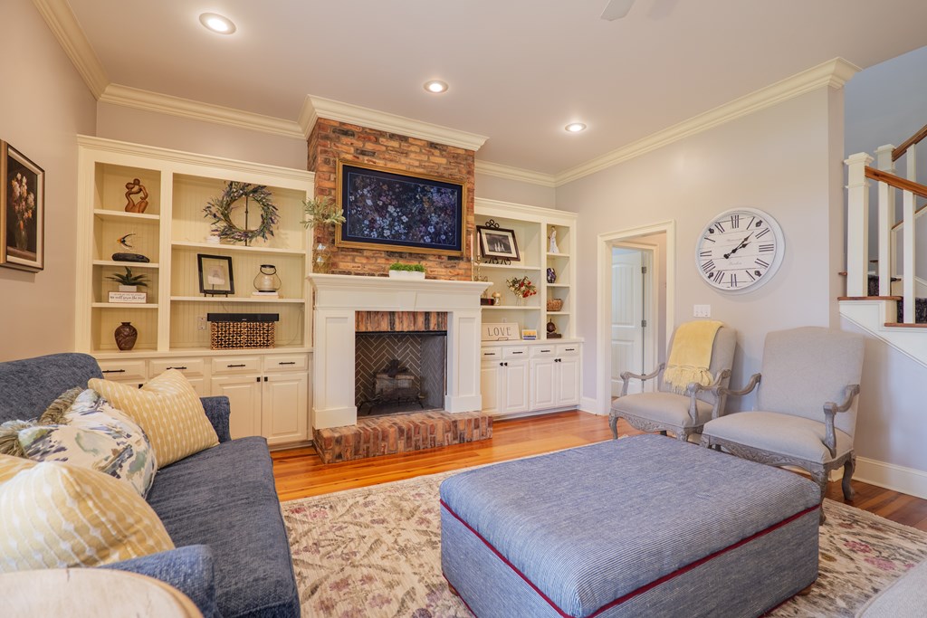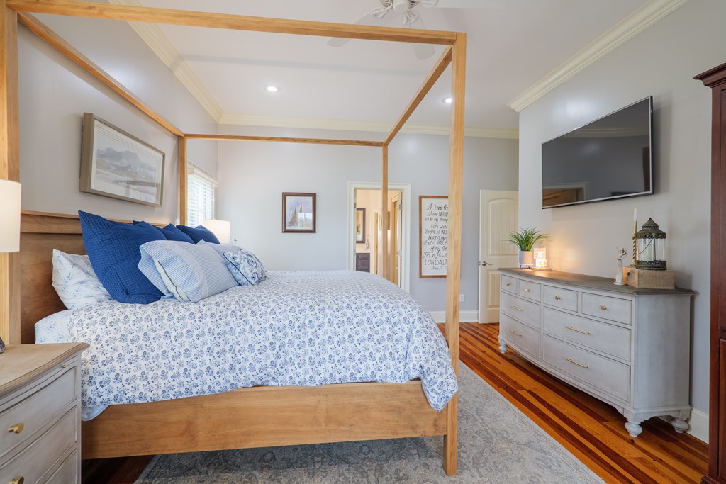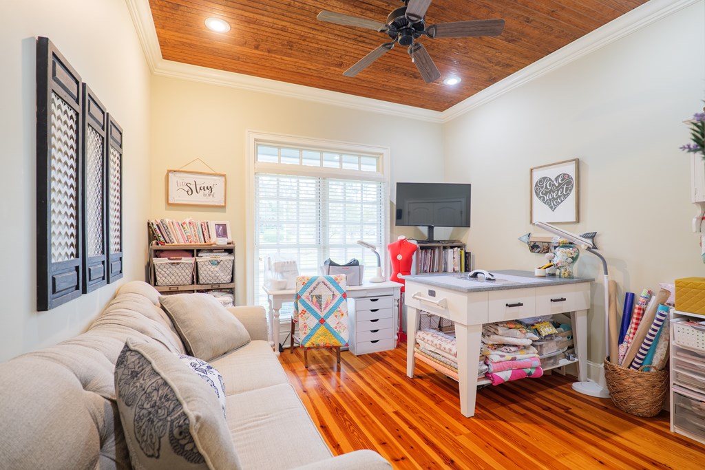 Custom waterfront retreat in McMullen Estates Beneath the shade of mature trees and overlooking a private pond, this custom two-story home delivers Southern charm with modern comforts. Built in 2006 on 2.23 acres, it offers 3,832 sq ft with five bedrooms and three baths. Heart-pine floors sweep through the main level, leading to an open living area anchored by a fireplace and breakfast nook. The kitchen is built for cooks and gatherings, with generous cabinetry, a walk-in pantry and granite counters. The main-level owner's suite adds privacy and convenience with dual closets and a bath featuring a soaking tub and walk-in shower, plus an adjacent bedroom, office, study, or nursery. Upstairs are three additional bedrooms, each with walk-in closets, along with a large entertainment or media room and walk-around attic storage. Outdoor living is a highlight. Relax on the deep front porch, covered back porch or the second-story balcony that overlooks the pond. Two tankless water heaters support the home. The property includes a two-car attached garage, durable cement siding, an architectural shingle roof, thermopane windows, well water and septic system. Appliances include a dishwasher, gas cooktop and a separate ice maker. Separate workshop.