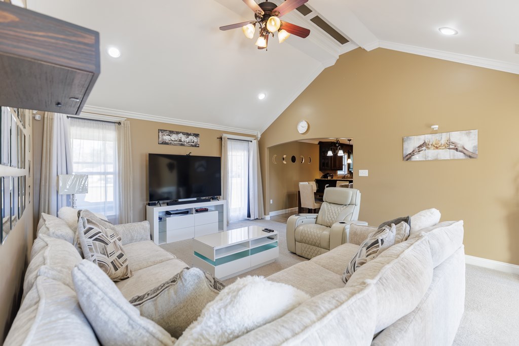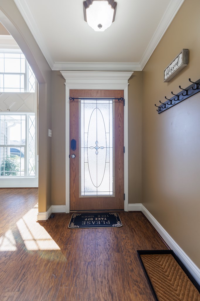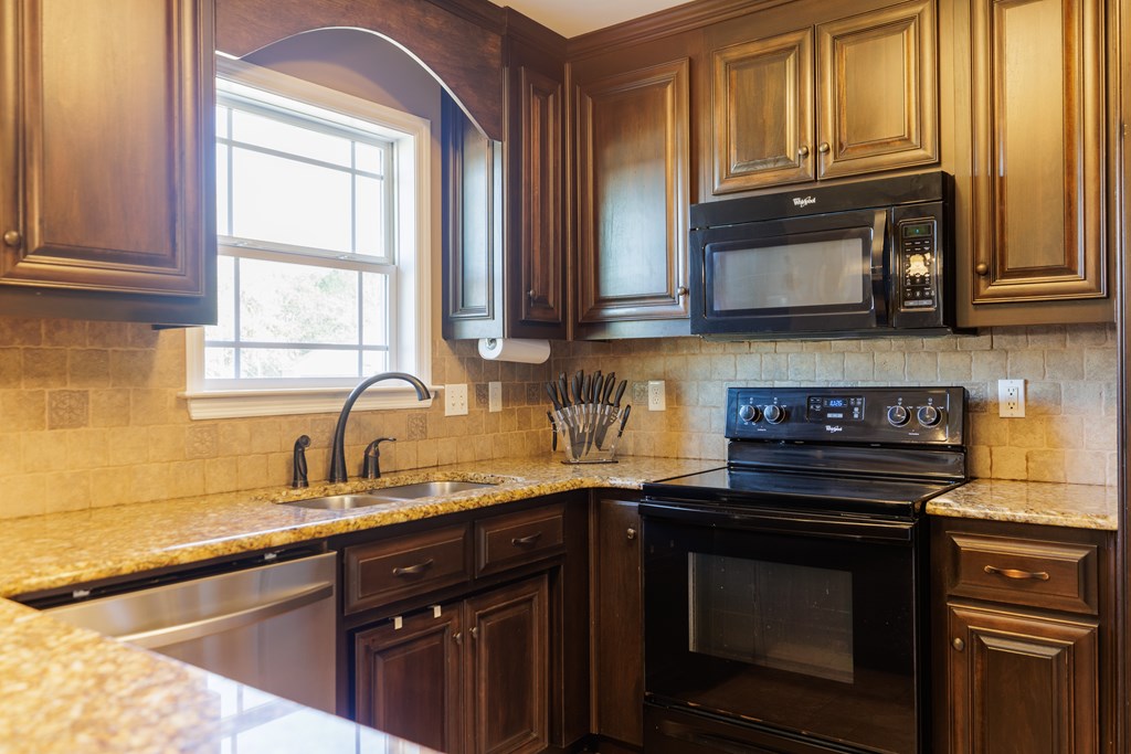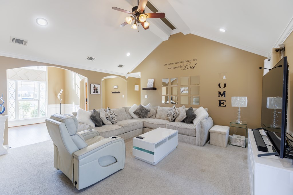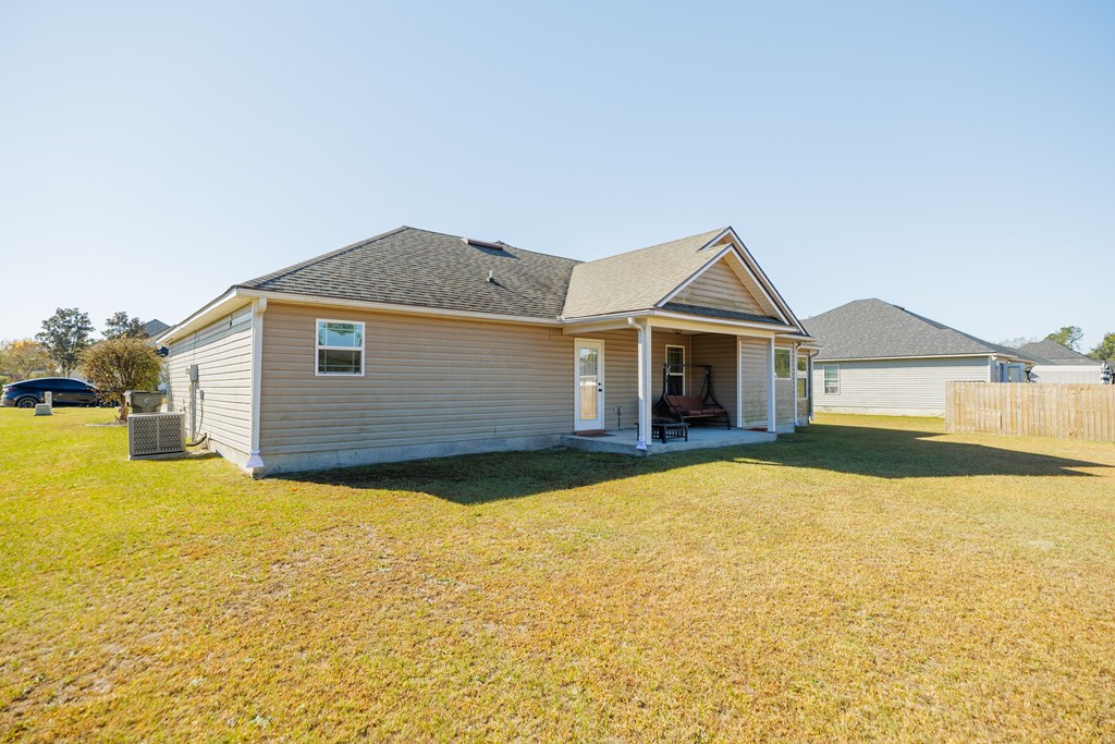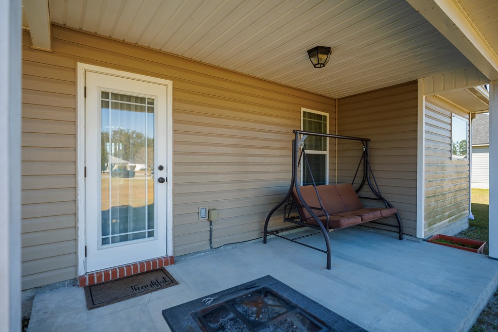 Welcome to this beautifully cared for 3 bed, 2 bath home, no HOA located just 3 minutes from Moody Air Force Base. With a new roof (2022), gutters, upgraded landscaping, and a new HVAC system (2022). The curb appeal immediately stands out with stone detailing, tidy landscaping, and a warm accent wood front door. Step through the foyer and you're welcomed by high ceilings and an abundance of natural light that flows throughout the home. The foyer opens into the formal dining room, featuring durable hardwood flooring that adds warmth, and long-lasting quality. Beautiful arched entryways, trim detailing, and stacked windows that soar toward the ceiling make this space both elegant and inviting. Continuing forward, you'll find the spacious and inviting open living room with a vaulted ceiling and plush carpeting, creating the perfect gathering space. The layout transitions seamlessly into the breakfast room and kitchen, offering plenty of room for a breakfast table plus barstool seating at the eat-at island. The kitchen comes complete with all appliances, granite countertops, tiled backsplash, wood cabinetry, and a pantry, giving you both style and functionality. The primary suite is on one side of the home and features a coffered ceiling and a spacious walk-in closet. The primary bathroom is beautifully appointed with a large soaking tub with tiled surround, walk-in tiled shower with rain showerhead, dual sinks, and upgraded gold fixtures, all highlighted by a large window allowing natural light to pour in. Both spare bedrooms are generously sized with great closet space and large windows. The spare bathroom includes a tub/shower combo, tiled flooring, and upgraded gold fixtures for a cohesive, elevated feel. The laundry room offers tiled flooring, cabinets, and shelving for storage. Outside, enjoy the covered backporch overlooking the large backyard. A 2-car garage completes this wonderful home. Beautifully maintained, thoughtfully upgraded, and minutes from Moody AFB