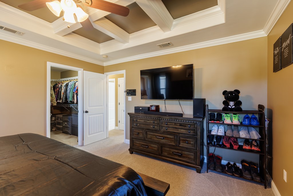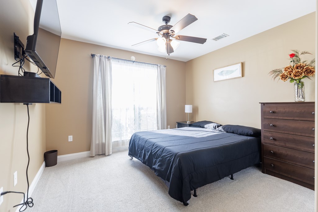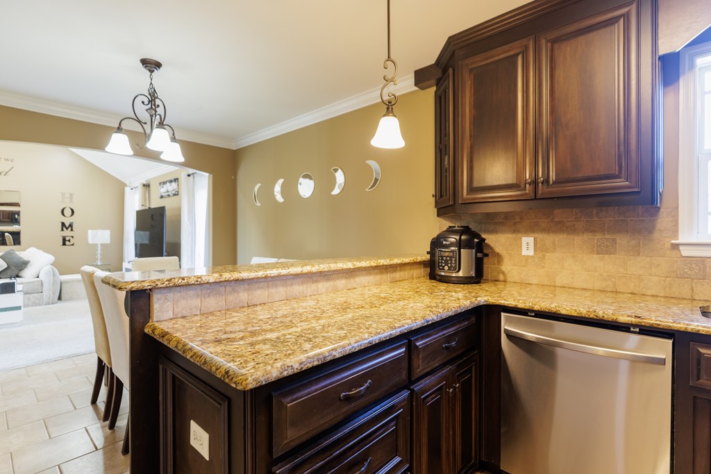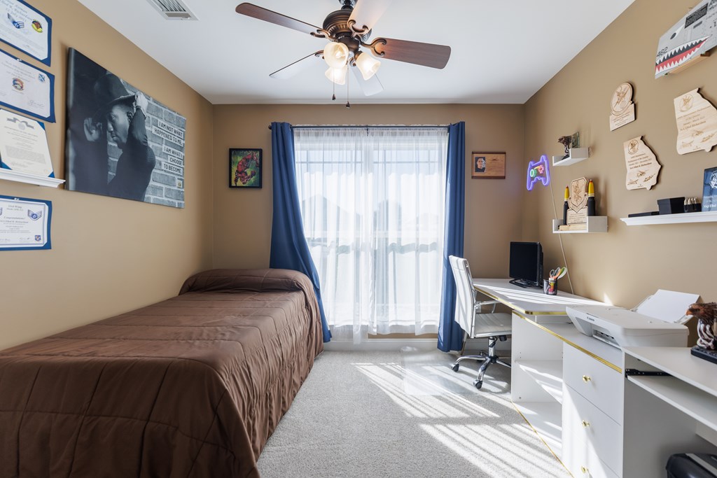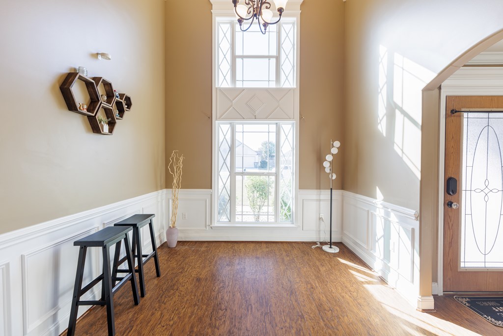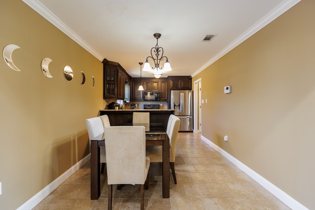 Welcome to this beautifully cared for 3 bed, 2 bath home, no HOA located just 3 minutes from Moody Air Force Base. With a new roof (2022), gutters, upgraded landscaping, and a new HVAC system (2022). The curb appeal immediately stands out with stone detailing, tidy landscaping, and a warm accent wood front door. Step through the foyer and you're welcomed by high ceilings and an abundance of natural light that flows throughout the home. The foyer opens into the formal dining room, featuring durable hardwood flooring that adds warmth, and long-lasting quality. Beautiful arched entryways, trim detailing, and stacked windows that soar toward the ceiling make this space both elegant and inviting. Continuing forward, you'll find the spacious and inviting open living room with a vaulted ceiling and plush carpeting, creating the perfect gathering space. The layout transitions seamlessly into the breakfast room and kitchen, offering plenty of room for a breakfast table plus barstool seating at the eat-at island. The kitchen comes complete with all appliances, granite countertops, tiled backsplash, wood cabinetry, and a pantry, giving you both style and functionality. The primary suite is on one side of the home and features a coffered ceiling and a spacious walk-in closet. The primary bathroom is beautifully appointed with a large soaking tub with tiled surround, walk-in tiled shower with rain showerhead, dual sinks, and upgraded gold fixtures, all highlighted by a large window allowing natural light to pour in. Both spare bedrooms are generously sized with great closet space and large windows. The spare bathroom includes a tub/shower combo, tiled flooring, and upgraded gold fixtures for a cohesive, elevated feel. The laundry room offers tiled flooring, cabinets, and shelving for storage. Outside, enjoy the covered backporch overlooking the large backyard. A 2-car garage completes this wonderful home. Beautifully maintained, thoughtfully upgraded, and minutes from Moody AFB