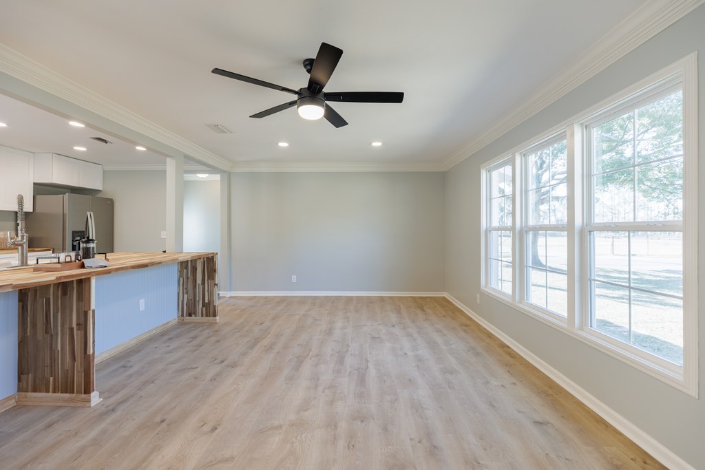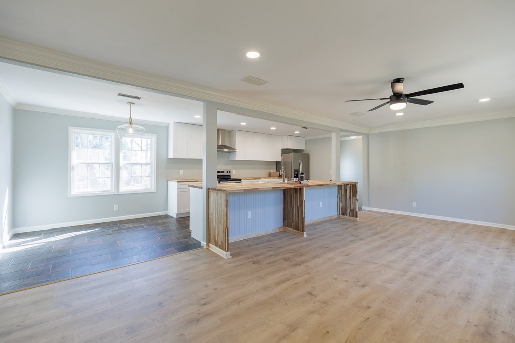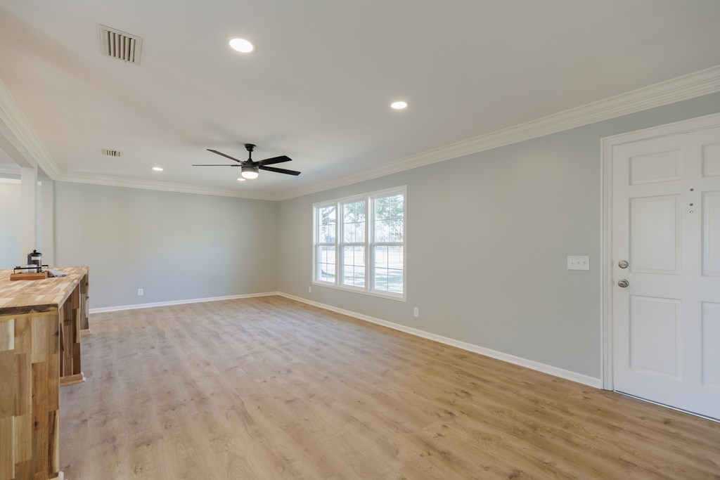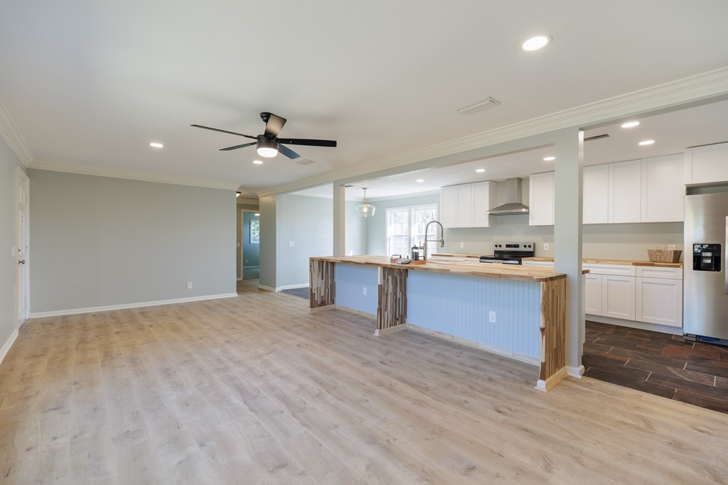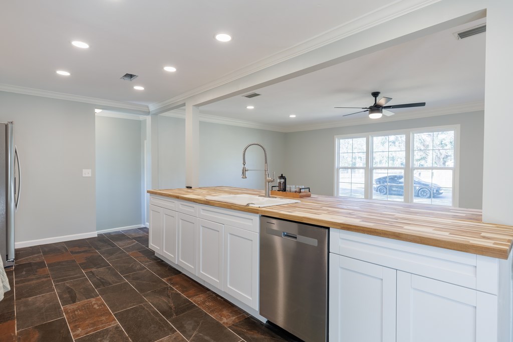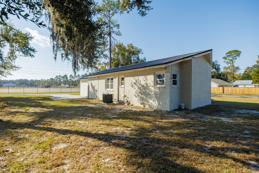 Completely remodeled from top to bottom, this stunning 4 bed, 2 bath home offers the peace of mind of truly everything brand new. Beautiful off-white brick with wood columns, a black metal roof (2025), classic black door, and the original preserved door knocker, this home blends modern upgrades with timeless charm. Step inside to an inviting living room filled with natural light from the all-new thermopane windows. Brand new LVP flooring stretches throughout the main living area, leading you into the open-concept kitchen. The centerpiece is the locally sourced butcher block island with a waterfall edge, complemented by brand new white soft-close cabinetry, upgraded stainless steel appliances, a farmhouse sink, artisan-made tile accents, and recessed lighting throughout. A spacious dining room sits just off the kitchen, creating an ideal flow for everyday living and entertaining. This split floor plan places the three oversized spare bedrooms on one side of the home, each with upgraded carpet, fresh interior paint, new lighting and ceiling fans, and all new upgraded doors and hardware. The updated guest bathroom includes a timeless pedestal sink, showertub combo, and beautiful tile flooring. Privately tucked on the opposite side, the primary suite offers a massive bedroom filled with natural light, dual closets, new carpet, and upgraded lighting. The primary bathroom features dual sinks, all-new fixtures, and a brand new shower. Additional updates include a new 3-ton HVAC system, new water heater, new plumbing and plumbing fixtures, new electrical, new interior and exterior paint, and upgraded lighting throughout. Outside, enjoy a spacious backyard with a concrete pad. Just 2 minutes from Banks Lake National Wildlife Refuge, a 4,049-acre natural treasure known for fishing, paddling, wildlife, and unforgettable sunsets over moss-draped cypress trees, and within walking distance to Lanier County Middle & High School. USDA eligible! 16 minutes to Moody AFB.