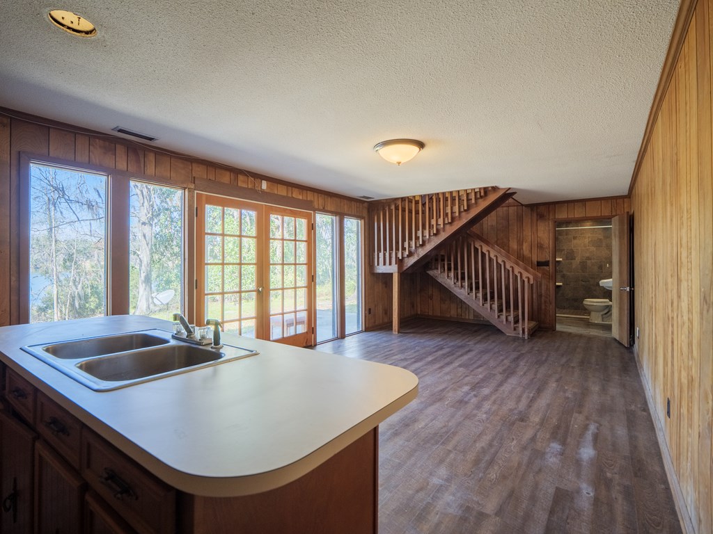 LAKE FRONT INVESTMENT OPPORTUNITY! This 2934 sqft red brick home sits on the coveted Hammock Lake, stocked with bass and crappie. AVR comes in around $440k based on 6 month comparables. This home has a new roof, dock on the lake, 2 car garage, granite-counters in the kitchen, solid wood cabinets, and more. The main floor hosts a formal dining room, spacious living room with raised ceilings and floor-to-ceiling windows facing the lake as well as a wood burning fireplace and outdoor balcony, large kitchen, oversized laundry room, 3 big bedrooms and 2 full bathrooms. Downstairs host another bedroom, renovated bathroom and 2nd living room with a 1/2 kitchen as well as storage. Your driveway wraps around to the back sliding glass doors on the lower floor and the shower is ADA compliant. This home is livable as-is. With some modern updates, your home value would raise to $440k-$450k, offering a sweat-equity position for a home owner or flip potential for an investor. It's rare to find a lake home truly on the lake in this price range with so much potential. Call me or your favorite realtor to tour today before it's gone!