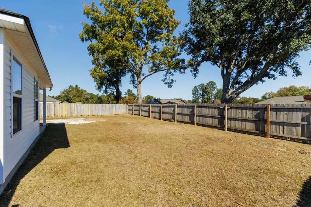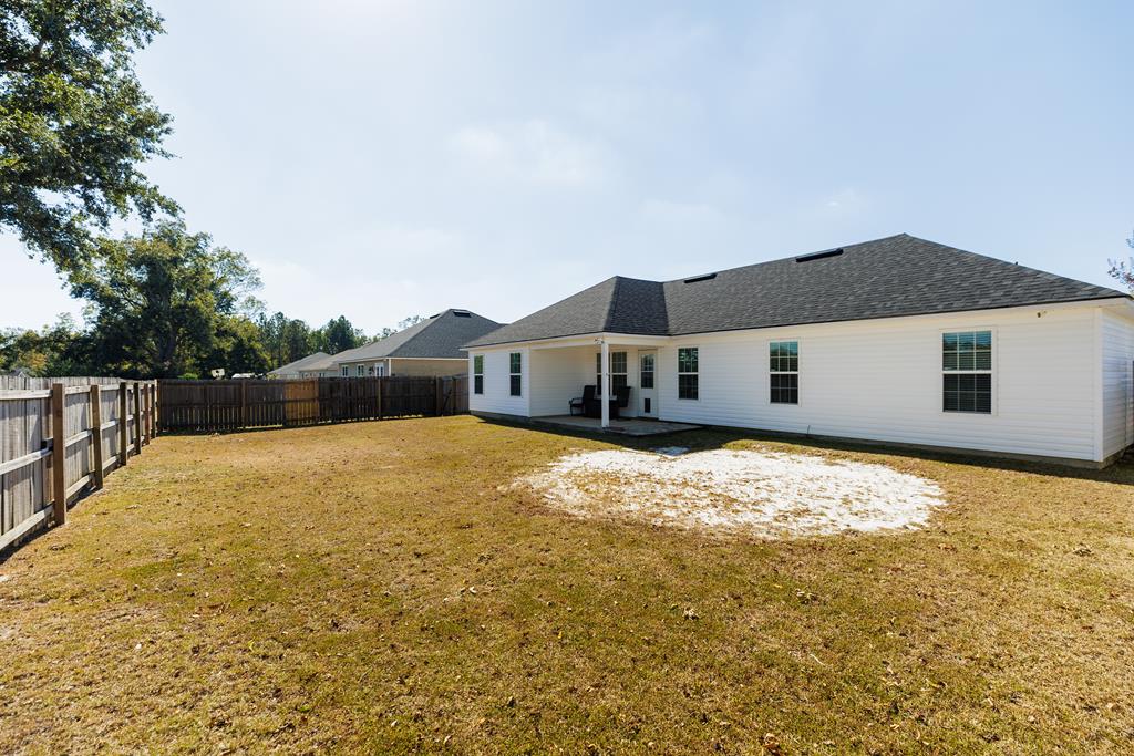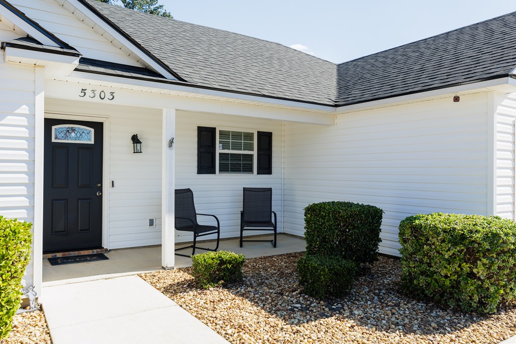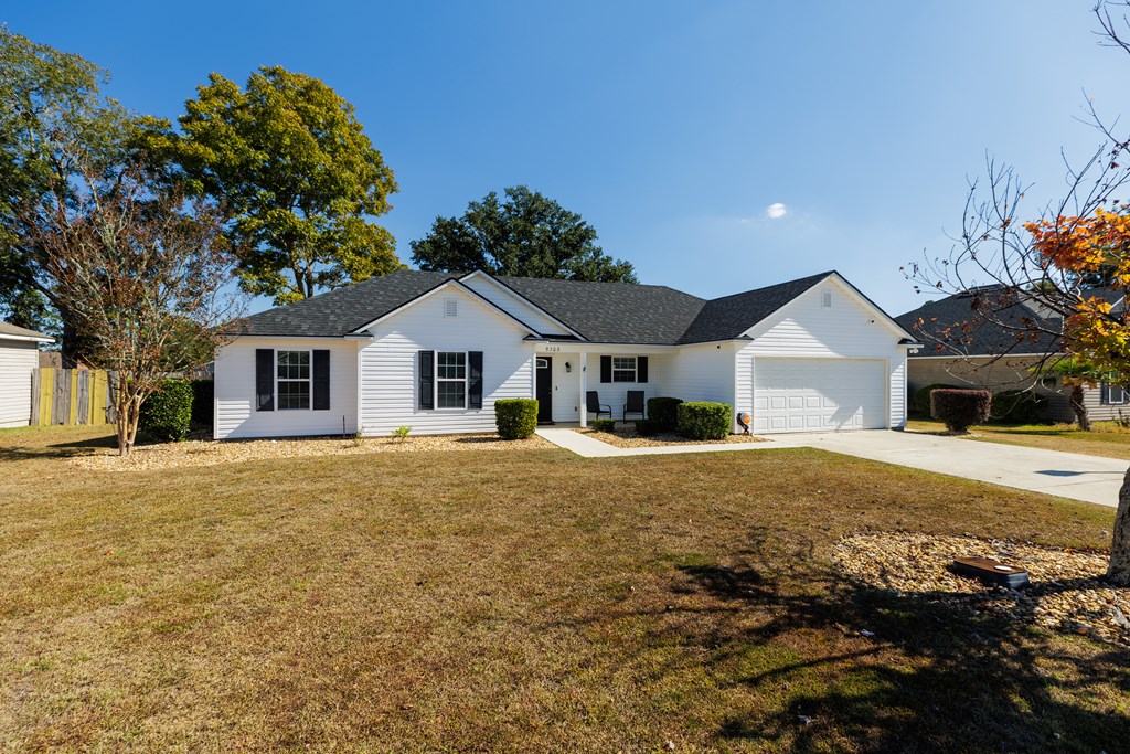 5303 Branch Point Drive - This well-maintained 4-BEDROOM, 2-BATH home offers convenience and a NEW ROOF. Step inside to a true foyer entryway that opens into a vaulted great room, creating a spacious and airy feel. The eat-in kitchen features a breakfast bar, pantry closet, newer dishwasher and microwave, and plenty of workspace for everyday living. All appliances are included. The primary suite includes a tray ceiling, walk-in closet, tub and separate shower, and dual vanity. Split floorplan with three bedrooms and bath on the opposite side of the home. Additional features include a laundry room off the garage with a sink, ceiling fans added to all bedrooms, and AT&T fiber internet. Enjoy peace of mind with a new roof (2024), new front door and frame (2024), newer water heater, and a security system with cameras. Relax outdoors under the covered patio overlooking the privacy-fenced backyard - most of the 4x4 posts have been replaced for durability. Conveniently located just a short drive to Moody AFB, schools, shopping at Aldi, Publix, Walmart, and restaurants. Video link: https://youtu.be/FbPgJufyzW0