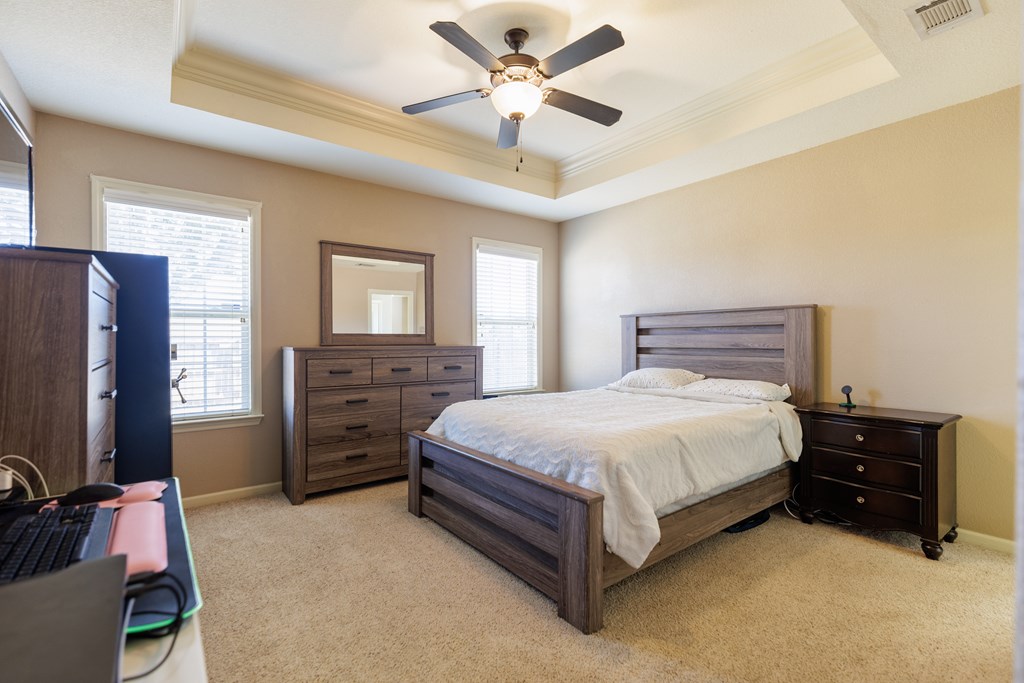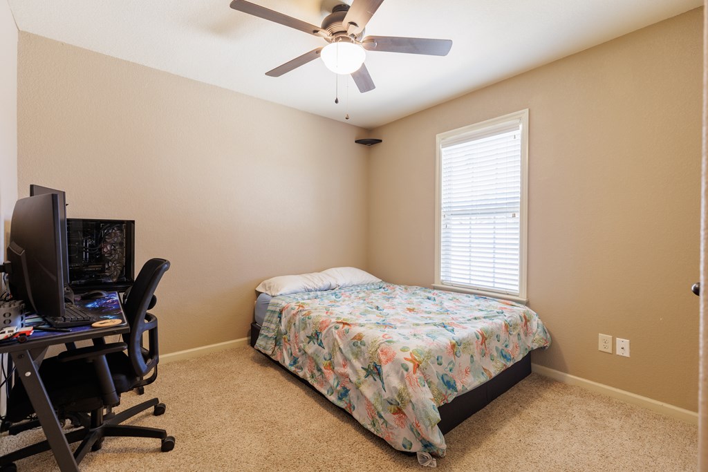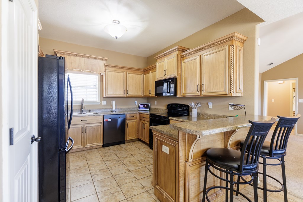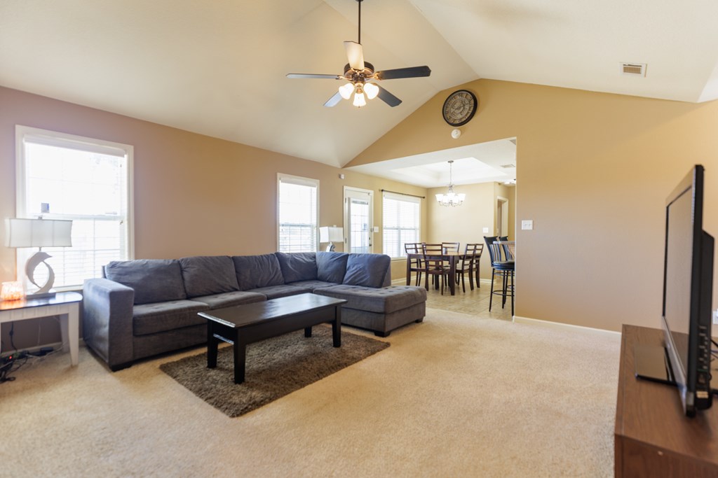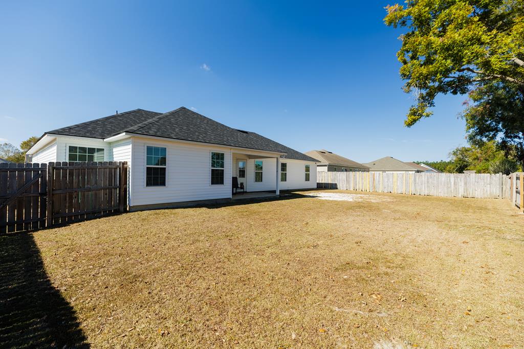 5303 Branch Point Drive - This well-maintained 4-BEDROOM, 2-BATH home offers convenience and a NEW ROOF. Step inside to a true foyer entryway that opens into a vaulted great room, creating a spacious and airy feel. The eat-in kitchen features a breakfast bar, pantry closet, newer dishwasher and microwave, and plenty of workspace for everyday living. All appliances are included. The primary suite includes a tray ceiling, walk-in closet, tub and separate shower, and dual vanity. Split floorplan with three bedrooms and bath on the opposite side of the home. Additional features include a laundry room off the garage with a sink, ceiling fans added to all bedrooms, and AT&T fiber internet. Enjoy peace of mind with a new roof (2024), new front door and frame (2024), newer water heater, and a security system with cameras. Relax outdoors under the covered patio overlooking the privacy-fenced backyard - most of the 4x4 posts have been replaced for durability. Conveniently located just a short drive to Moody AFB, schools, shopping at Aldi, Publix, Walmart, and restaurants. Video link: https://youtu.be/FbPgJufyzW0