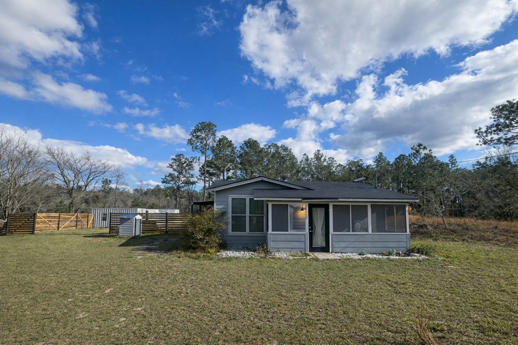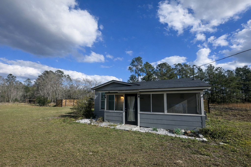 Peaceful country living with modern style and endless possibilities. Welcome to this beautifully remodeled 3-bedroom, 2-bath home on 4.4 private acres surrounded by nature. Whether you're looking for space to spread out, hunt, fish, or simply enjoy the quiet of the countryside, this property offers the perfect blend of privacy and modern farmhouse charm. Inside the main home, you'll find a beautiful updated interior featuring upgraded lighting, custom barn doors, wood beams, and stunning wood plank ceilings that create warmth and character throughout the living spaces. A hidden bookshelf door in the family room adds a unique design touch and opens into the spacious primary suite. The modern farmhouse kitchen is designed with butcher block countertops, shaker cabinetry, mosaic tile backsplash, farmhouse sink, hanging pot rack, built-in microwave, and a new cooktop with custom hood vent, making it the perfect space for everyday living. The primary bathroom offers an extra large spa-like jetted garden tub, to treat yourself and relax after a long day. Step outside and enjoy the peaceful 4.4-acre setting with a pond, ideal for fishing, wildlife watching, or outdoor recreation. The property is well-suited for hunting, homesteading, gardening, or simply enjoying wide open space. One of the most unique features of this property is the custom-built shipping container studio, thoughtfully designed with climate-controlled living space, full bathroom, dedicated storage, and a workshop area. Equipped with water, electricity, and A/C, this versatile space is perfect for a Guest or in-law suite, Creative studio or home office, Homeschool space, Hobby workshop, Airbnb or rental potential, or your own Private retreat. Tucked away with only a few homes nearby, the property offers the privacy of country living while still being conveniently located just minutes from Hwy 84 and approximately 10 minutes from Valdosta, Lakeland, and Moody Air Force Base. Eligible for USDA Financing.