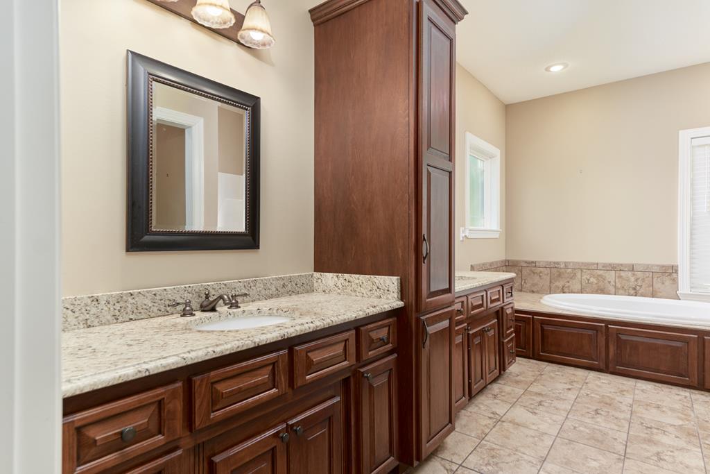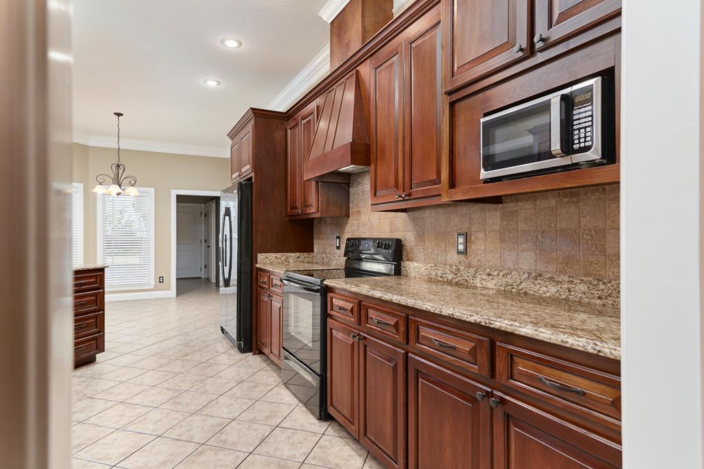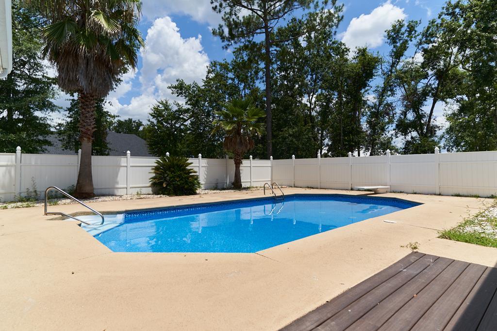Sitting on a well-proportioned one-acre lot, you'll appreciate the privacy and open space this property offers. The inground pool makes this home an ideal place to unwind and entertain. Plus, with the front door facing north, you'll avoid the harsh afternoon sun. Step inside to find nearly 3,000 sq. ft. of comfort, featuring soaring 11-foot ceilings, granite countertops throughout, and inviting covered porches on both the front and back. Each of the five spacious bedrooms includes its own lighted walk-in closet, highlighted by a huge 16x7 closet in the primary suite! The refined primary bath features dual sinks with ample storage, a soaking tub, a separate shower, and a private WC. The living room blends comfort and style with engineered hardwood floors, a warm gas fireplace framed by custom built-ins, and elegant crown molding. The mounted TV remains with the home, along with ALL appliances, including the refrigerator, washer, and dryer! You'll also enjoy a roomy 3-car garage with added storage and a utility closet. And the bonus: this property includes access to Long Pond.....yes, bring your boat and enjoy lake life just minutes from home!