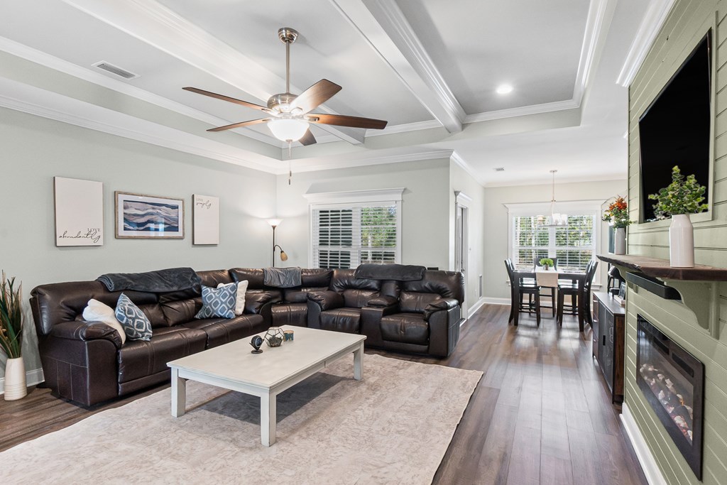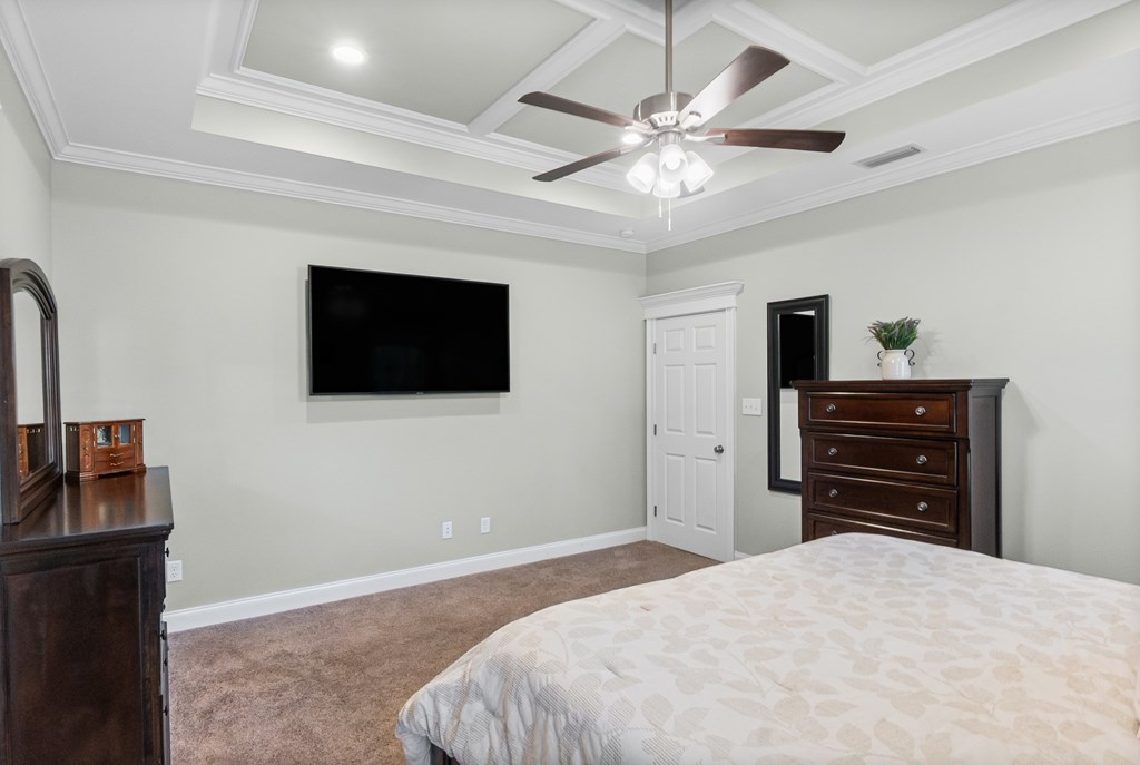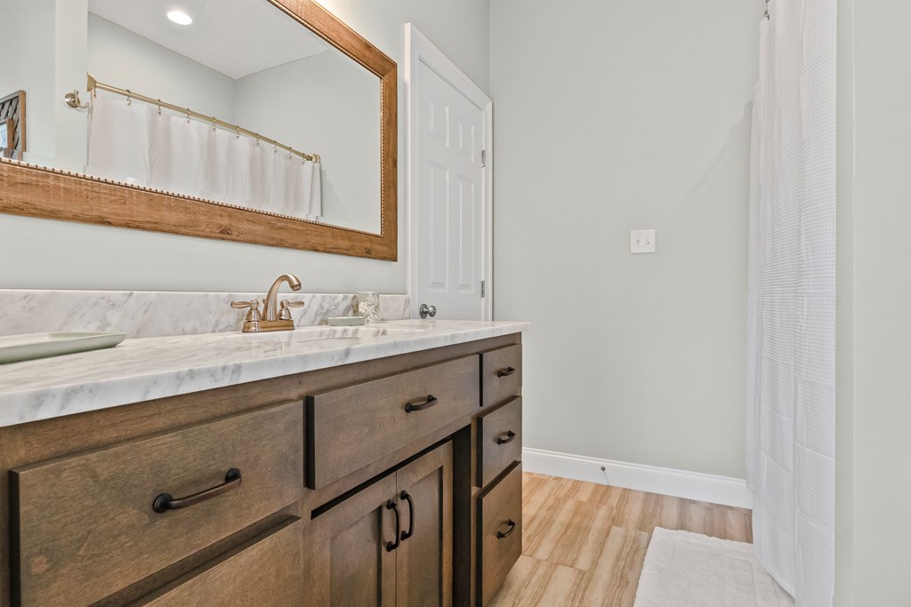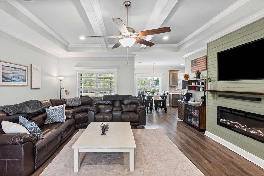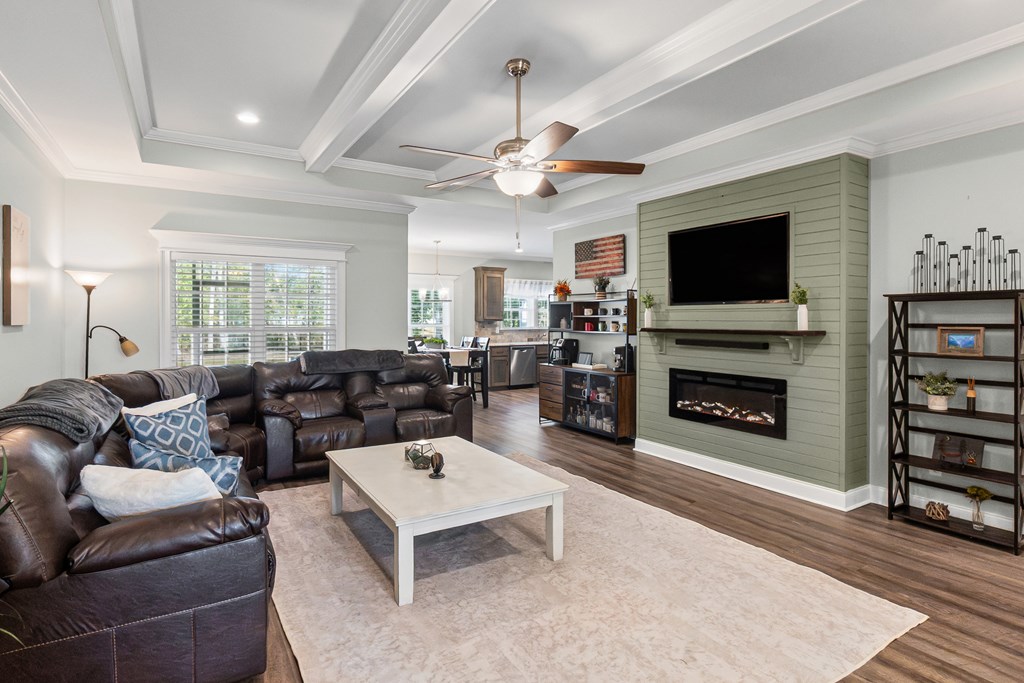 Discover exceptional craftsmanship and peaceful country living with lake access in this stunning 4-bedroom, 3-bathroom home located in the desirable Hidden Cove community. Situated on 2.03 acres, this property offers a spacious split floorplan designed for comfort and privacy. The living room features a tray ceiling with decorative beams, an electric fireplace with charming shiplap accents. The kitchen impresses with abundant counter space, a walk-in pantry, and a bright informal dining areaperfect for everyday living and entertaining. Outdoor living has been elevated with a serene screened-in porch and an extended custom patio framed by a charming sitting wall. The primary suite offers a quiet retreat with a large layout, walk-in closet, dual vanities, a tiled shower, and a relaxing soaking tub. Guests will appreciate the convenience of a secondary bedroom with its own private en-suite bathroom. And for those who love projects, storage, or hobbies, the large 30x30 shop with electricity and two roll-up doors is a dream come true. Enjoy fishing, boating and skiing on the 225 acre lake! This Hidden Cove gem offers the lifestyle you've been dreaming of peaceful, spacious, and ready to welcome you home.
