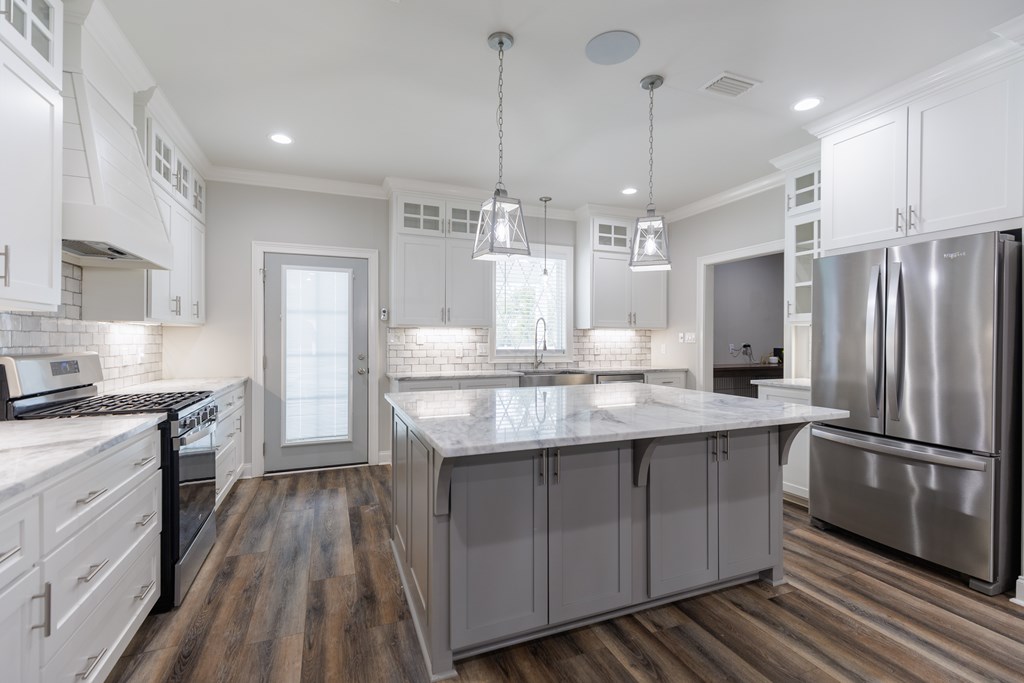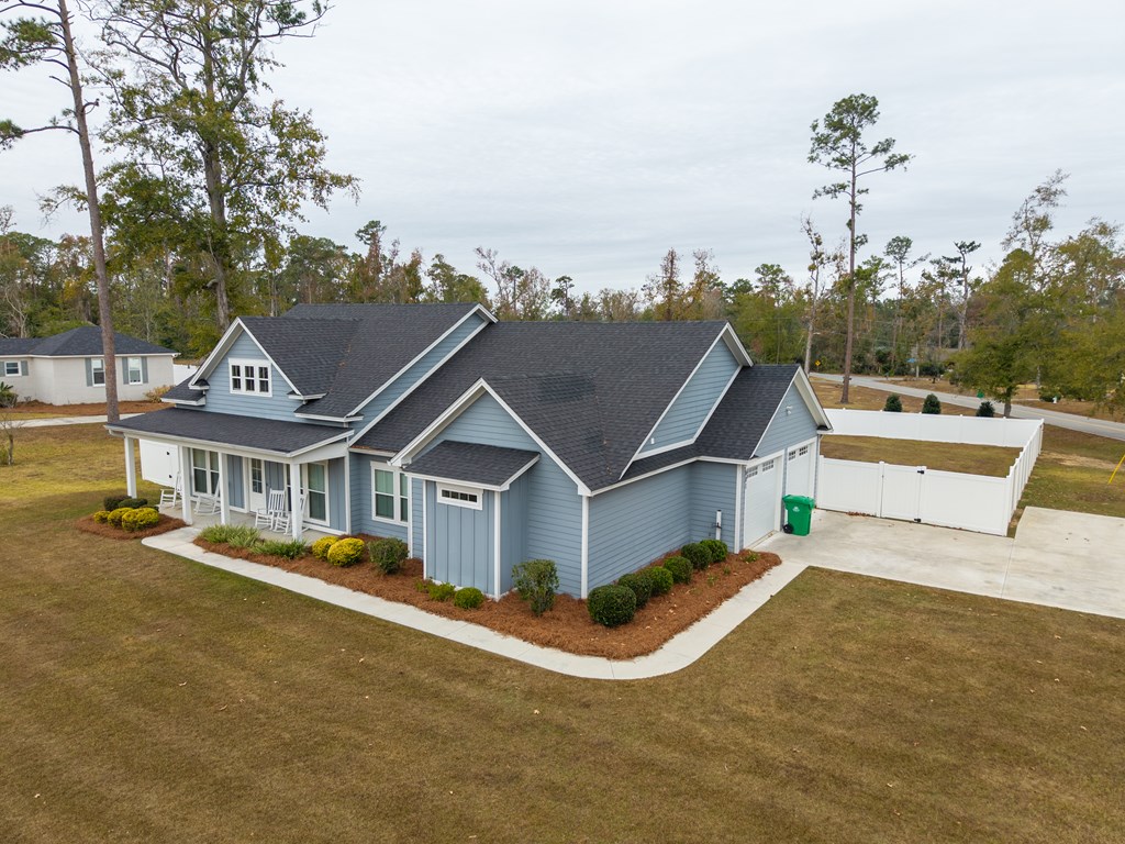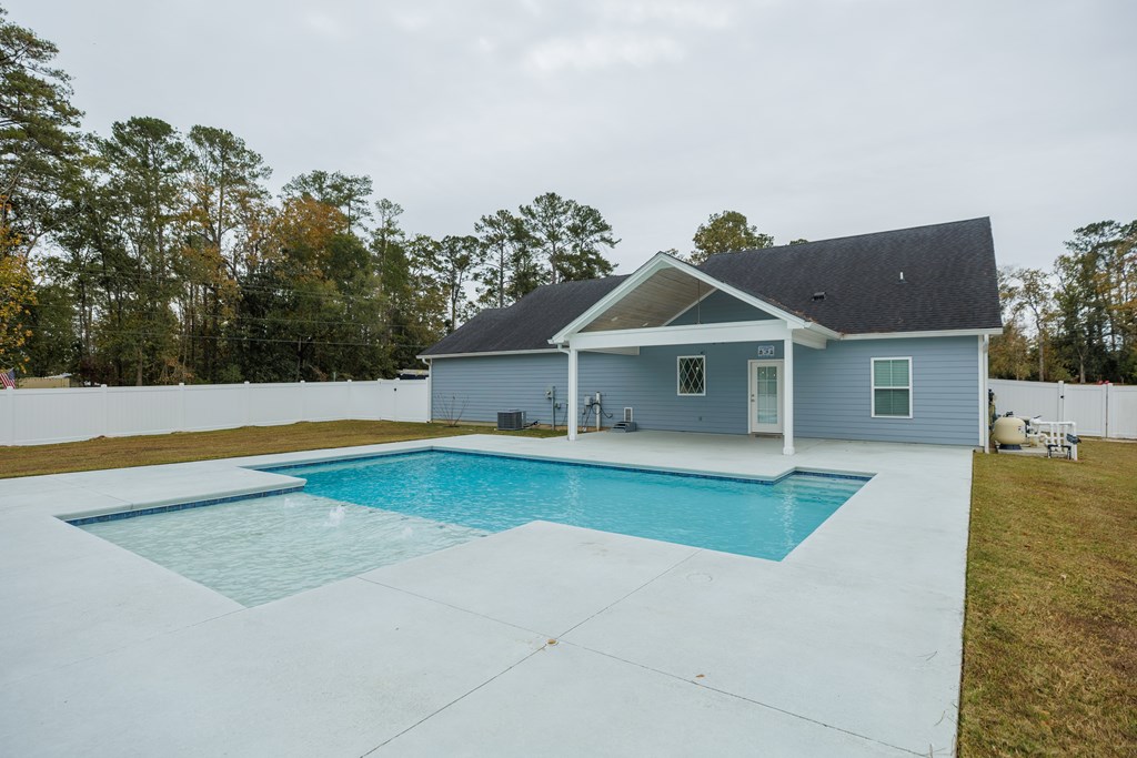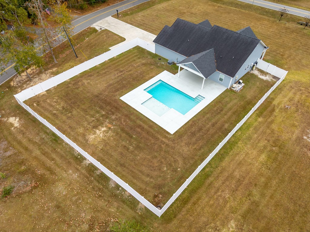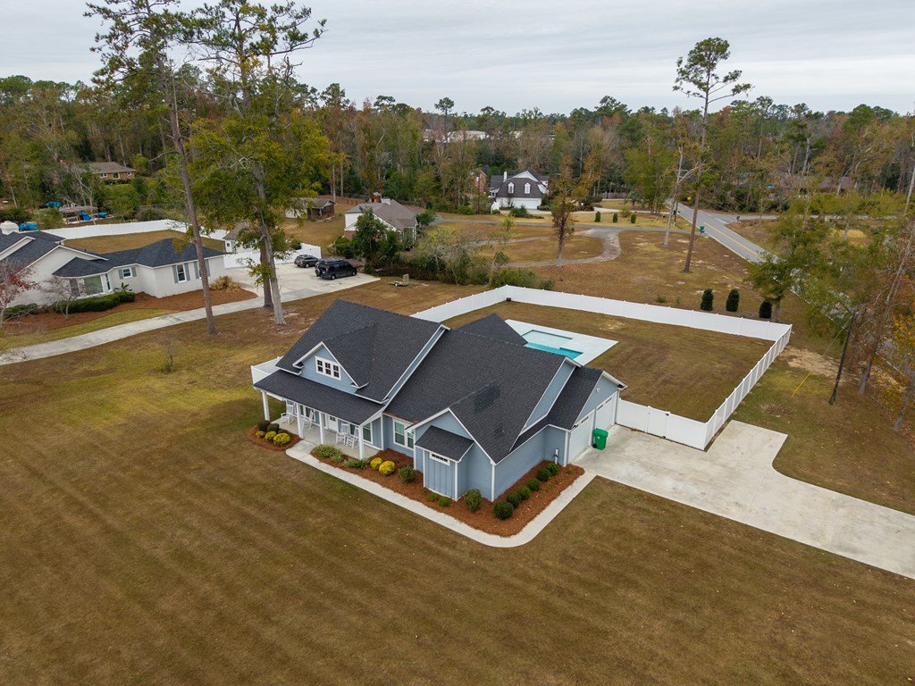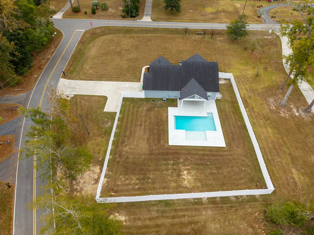 CUSTOM BUILT HOME on a .87 acre CORNER LOT in one of the most desirable locations in town. Designed with care and maintained with pride, it blends modern finishes, energy efficiency, and thoughtful features throughout. Inside, you'll find marble countertops, luxury vinyl plank flooring, spray foam insulation, and a built-in sound system with speakers. The open-concept living area is anchored by vaulted ceilings and a stone natural gas fireplace, creating a warm and inviting space for everyday living and entertaining. The DESIGNER KITCHEN offers a perfect mix of style and function with under-cabinet lighting, White shaker cabinets with glass fronts, a large marble island with seating, subway tile backsplash, and a GAS STOVE. Refrigerator, dishwasher, and microwave are also included. Adjacent spaces include a BUTLER'S PANTRY, custom mudroom, and laundry area with built-ins for seamless organization. Smart home upgrades include Nest thermostat, Nest smoke alarms, Nest doorbell and multiple cameras, WiFi-enabled light and fan switches, and USB-integrated receptacles. Additional energy-efficient features include a tankless natural gas hot water heater and a Culligan water system. The oversized two-car garage provides extra height to accommodate large trucks, along with ample storage space. The primary suite offers a serene retreat with a custom glass walk-in shower, dual vanities, and elegant finishes. Secondary bedrooms and baths reflect the same bright, modern aesthetic designed to have natural light and abundant closet space. NEXT, let's step outside to your SALT WATER POOL with natural gas heater, covered patio, and fully fenced backyard with white vinyl fencing, creating a private, inviting outdoor living area. ADDITIONAL FEATURES INCLUDE a custom built-in dog kennel with a dog door offers easy backyard access for pets, GUTTERS, HIGH SPEED INTERNET AND RETREAT AND REPAIR TERMITE BOND WITH ASTRO. COME SEE ALL THIS BEAUTIFUL CUSTOM BUILD HAS TO OF OFFER!