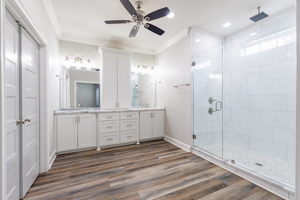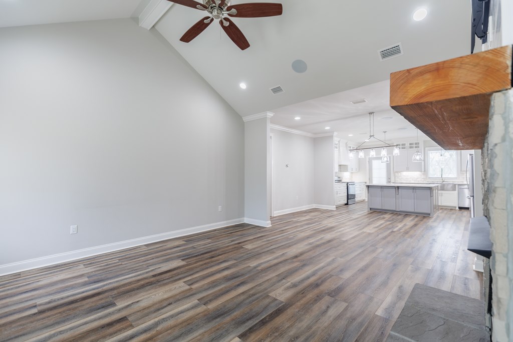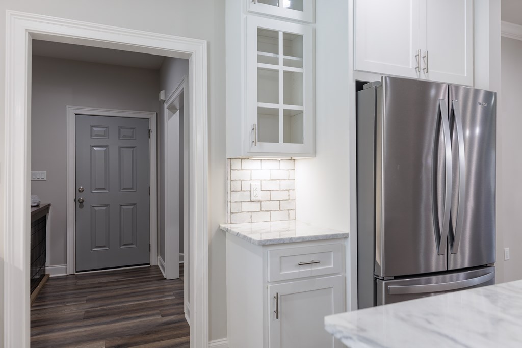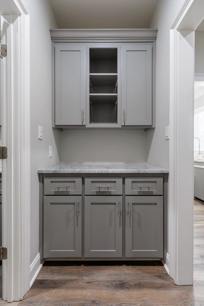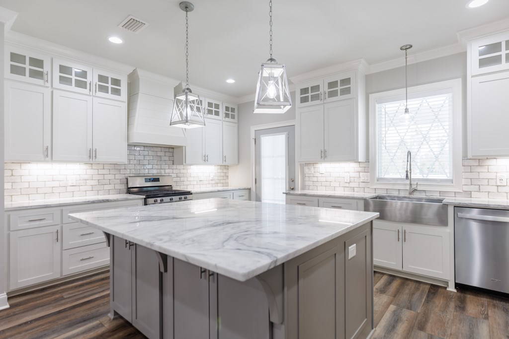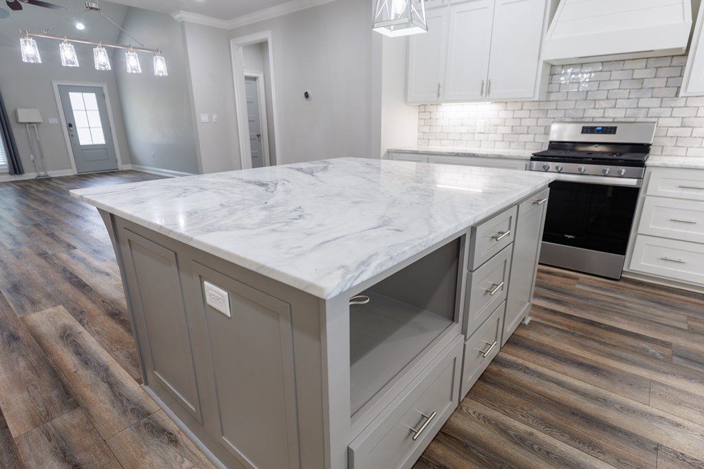 CUSTOM BUILT HOME on a .87 acre CORNER LOT in one of the most desirable locations in town. Designed with care and maintained with pride, it blends modern finishes, energy efficiency, and thoughtful features throughout. Inside, you'll find marble countertops, luxury vinyl plank flooring, spray foam insulation, and a built-in sound system with speakers. The open-concept living area is anchored by vaulted ceilings and a stone natural gas fireplace, creating a warm and inviting space for everyday living and entertaining. The DESIGNER KITCHEN offers a perfect mix of style and function with under-cabinet lighting, White shaker cabinets with glass fronts, a large marble island with seating, subway tile backsplash, and a GAS STOVE. Refrigerator, dishwasher, and microwave are also included. Adjacent spaces include a BUTLER'S PANTRY, custom mudroom, and laundry area with built-ins for seamless organization. Smart home upgrades include Nest thermostat, Nest smoke alarms, Nest doorbell and multiple cameras, WiFi-enabled light and fan switches, and USB-integrated receptacles. Additional energy-efficient features include a tankless natural gas hot water heater and a Culligan water system. The oversized two-car garage provides extra height to accommodate large trucks, along with ample storage space. The primary suite offers a serene retreat with a custom glass walk-in shower, dual vanities, and elegant finishes. Secondary bedrooms and baths reflect the same bright, modern aesthetic designed to have natural light and abundant closet space. NEXT, let's step outside to your SALT WATER POOL with natural gas heater, covered patio, and fully fenced backyard with white vinyl fencing, creating a private, inviting outdoor living area. ADDITIONAL FEATURES INCLUDE a custom built-in dog kennel with a dog door offers easy backyard access for pets, GUTTERS, HIGH SPEED INTERNET AND RETREAT AND REPAIR TERMITE BOND WITH ASTRO. COME SEE ALL THIS BEAUTIFUL CUSTOM BUILD HAS TO OF OFFER!