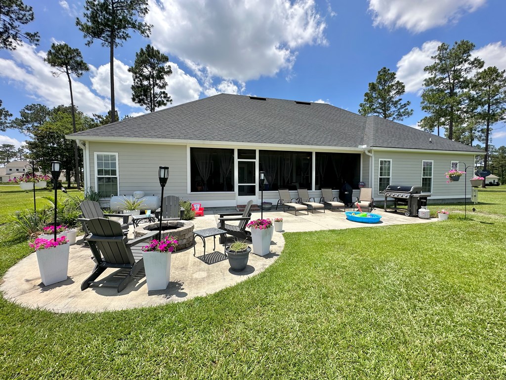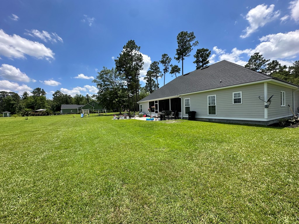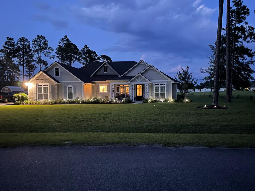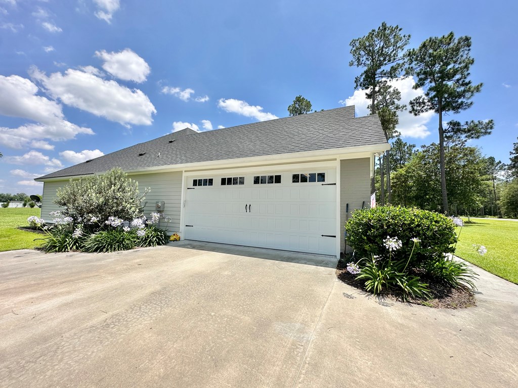 Like new 4 bedroom 3.5 home on 2 acres within 15 of Moody AFB. Large den with 10 foot ceilings and gas fireplace. Kitchen has custom cabinetry with granite counter tops, eat at island and open to breakfast room. Primary suite has trey ceiling. Primary bath has his and her vanities, garden tub and tiled shower with additional makeup vanity. Primary walkin closet is 12x16 which adjoins the laundry room. Back porch is screened and opens to patio and firepit area. The garage has heat/cooled room that could be used for small 6x8 private office or storage. RV electrical plug in garage. 50 amp electrical plug for generator connected to fuse box to power house off of generator with power outage. Generator not included but negotiable. Separate drive leads to 12x16 storage shed. A MUST SEE!!