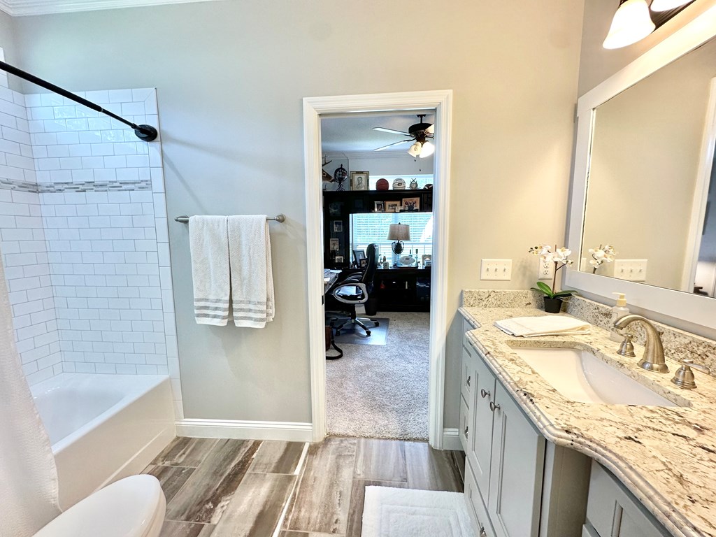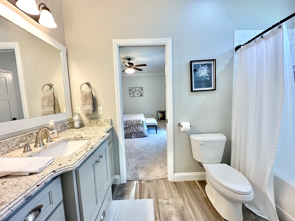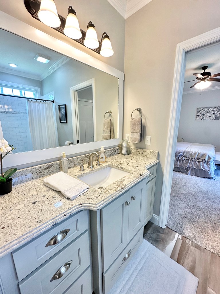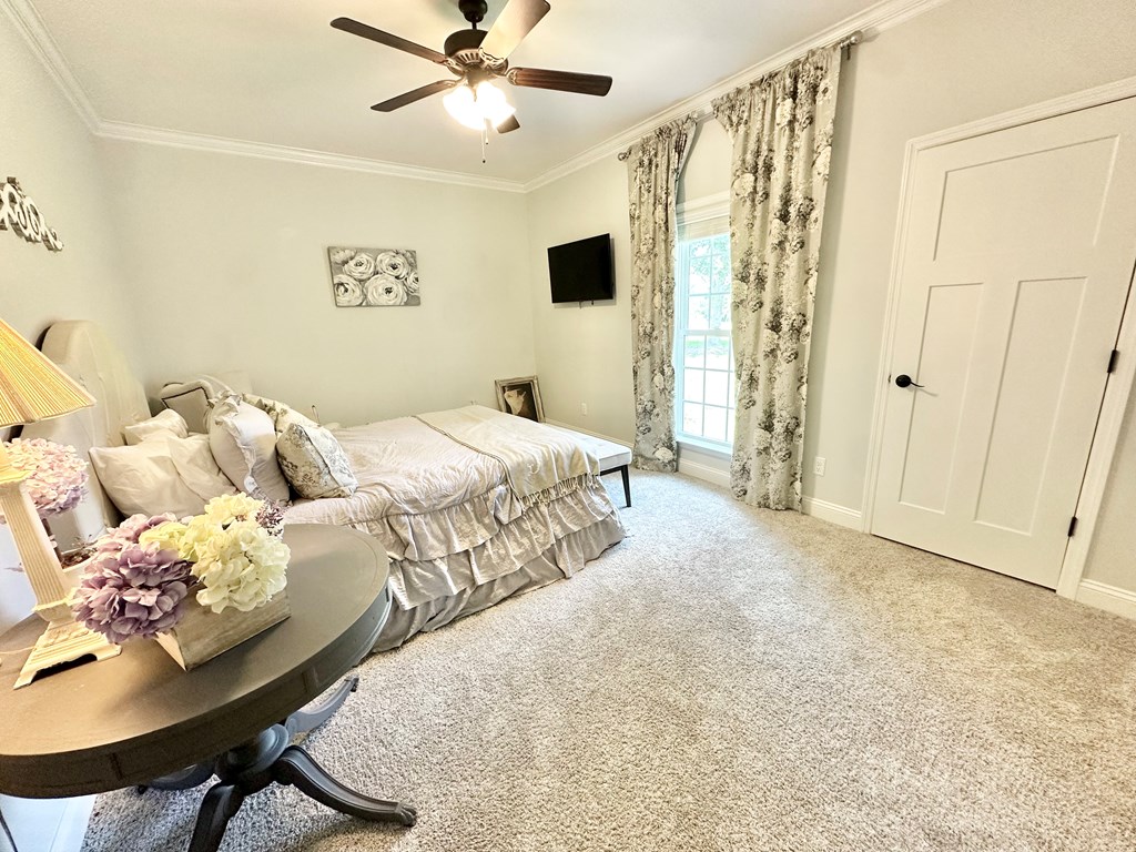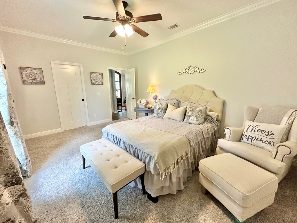 Like new 4 bedroom 3.5 home on 2 acres within 15 of Moody AFB. Large den with 10 foot ceilings and gas fireplace. Kitchen has custom cabinetry with granite counter tops, eat at island and open to breakfast room. Primary suite has trey ceiling. Primary bath has his and her vanities, garden tub and tiled shower with additional makeup vanity. Primary walkin closet is 12x16 which adjoins the laundry room. Back porch is screened and opens to patio and firepit area. The garage has heat/cooled room that could be used for small 6x8 private office or storage. RV electrical plug in garage. 50 amp electrical plug for generator connected to fuse box to power house off of generator with power outage. Generator not included but negotiable. Separate drive leads to 12x16 storage shed. A MUST SEE!!