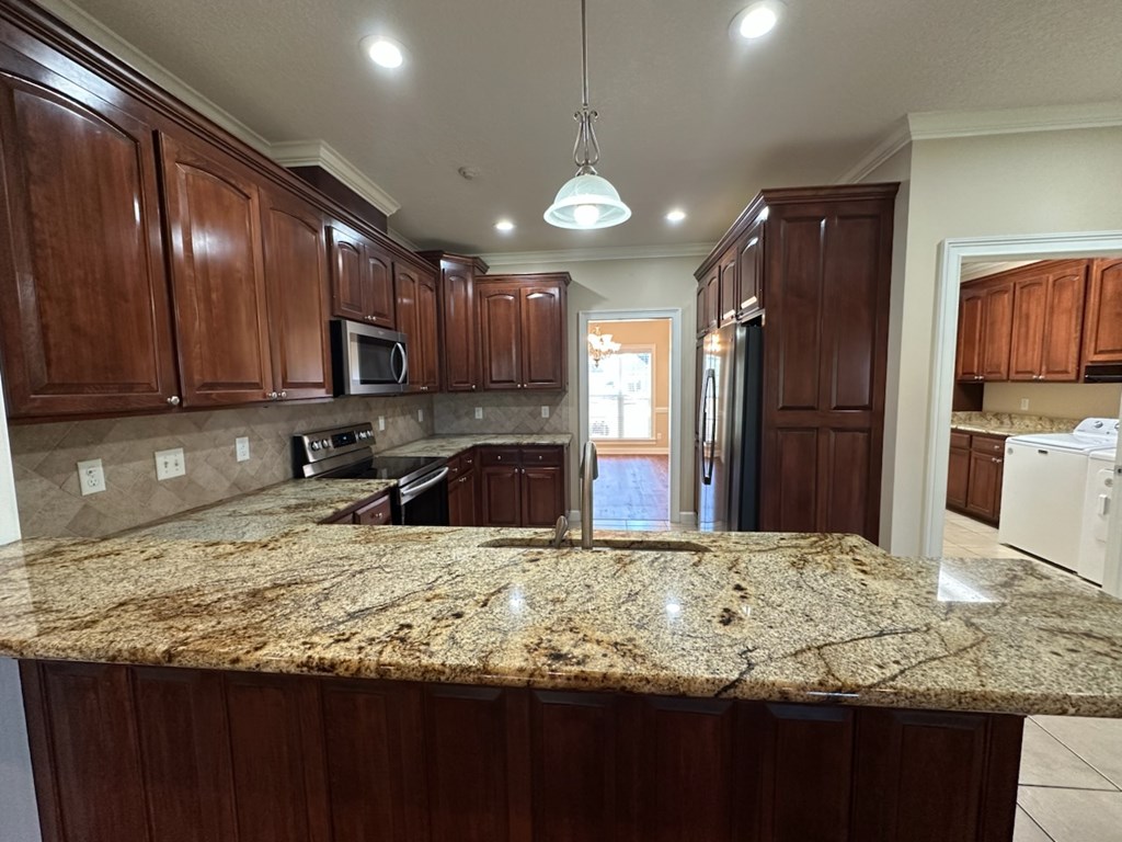Beautiful Lake Park home overlooking a serene pond with a private fishing deck! This charming 3-bedroom, 2-bath residence features a desirable split floor plan and a stunning screened-in back porch that opens to a spacious patioperfect for relaxing or entertaining. Inside, you'll find a modern kitchen with granite countertops and all-new stainless steel appliances. The home also includes a washer and dryer in a generously sized laundry room. An oversized 2-car garage provides ample parking and storage, while the adorable, roomy storage shed adds even more convenience. The exterior is truly a standout, showcasing exquisite landscaping accented with white rock details and bountiful citrus trees that add color and charm year-round. A beautiful, peaceful setting with thoughtful upgrades throughoutthis Lake Park gem is a must-see!