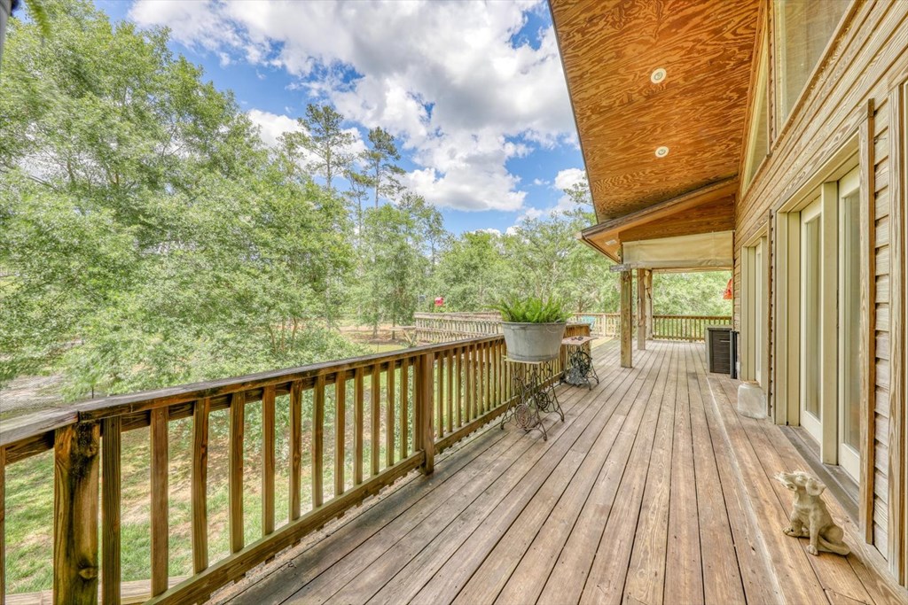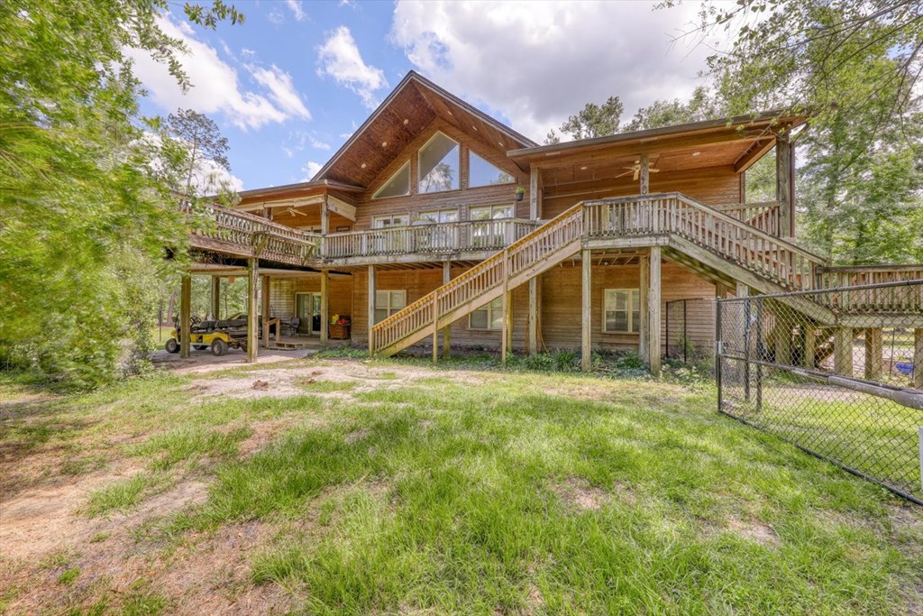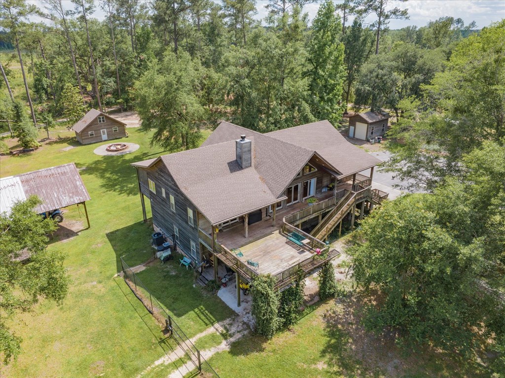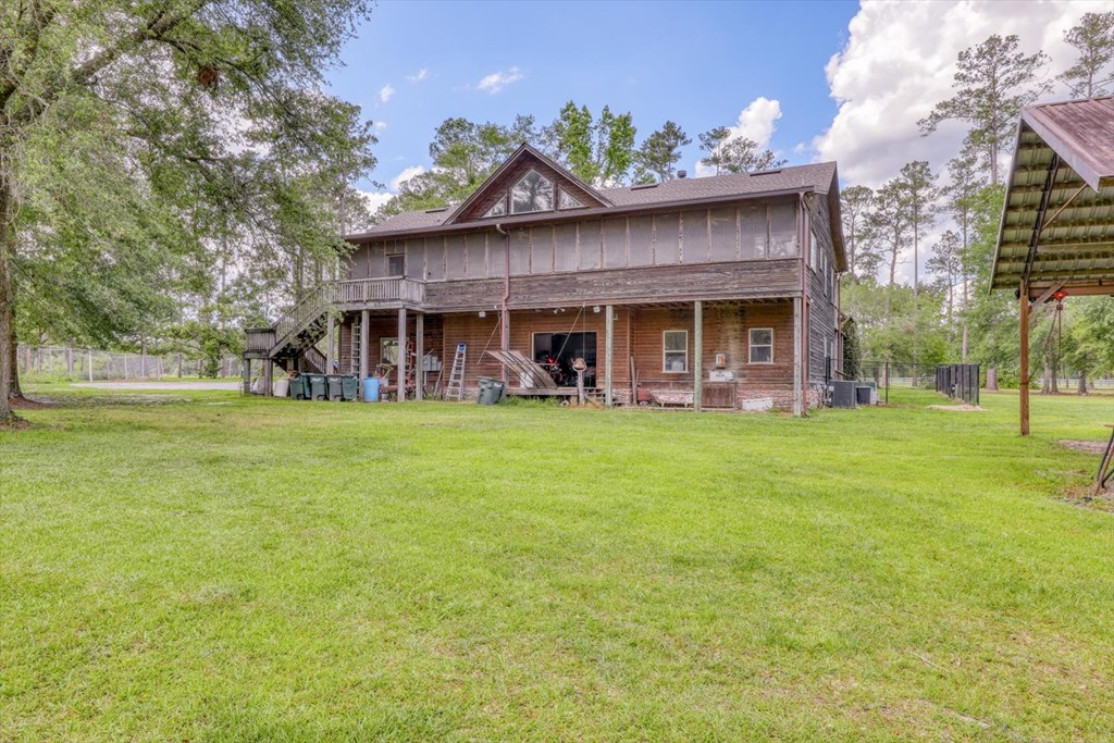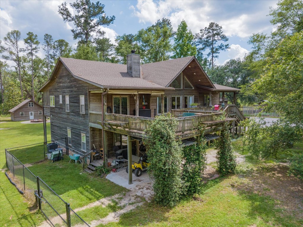 Welcome to 8262 Troupeville Road, a stunning country estate sited on 7.5 acres of gently rolling land shaded by mature oaks and pinesjust minutes from Valdosta Mall. This home seamlessly blends serene rural living with modern refinement, showcasing gleaming heartpine floors, elegant crown molding, and an abundance of natural light at every turn. Ascending to the main level, you'll be greeted by an open great room where vaulted ceilings soar above a wood-burning fireplace detailed with custom moldings. The adjacent kitchen is both beautiful and functional, featuring stainless-steel appliances, a generous island workspace, and abundant cabinetry. Two spacious bedrooms and two-and-a-half baths complete this floor; the luxurious primary suite delights with tray ceilings, crown molding accents, walk-in closet, a soaking tub, and a separate shower. Below, a fully self-contained one-bedroom, one-bath apartment offers its own kitchen, laundry room, and heartpine floorsideal for guests, in-laws, or generating rental income while preserving complete privacy and comfort. Outside, expansive covered porches span the full width of the home, while a massive elevated deck provides panoramic views of the grounds and overlooks a tranquil pond with a 2020 dockperfect for fishing, or simply watching the sunset. Car enthusiasts and hobbyists will appreciate the attached three-car garage with workshop area, plus a detached one-car garage for overflow storage. A large barn stands ready to shelter equipment, ATVs, or an RV, and a second storage barncomplete with a full bathawaits conversion into a guest house or private studio, with plumbing and electrical already in place. Conveniently located near Valdosta State University, top-rated schools, shopping, parks, and I-75 for easy travel to Jacksonville, Gainesville, or Atlanta, 8262 Troupeville offers an unparalleled opportunity to enjoy luxurious country living without sacrificing modern comforts. Schedule your private tour today.