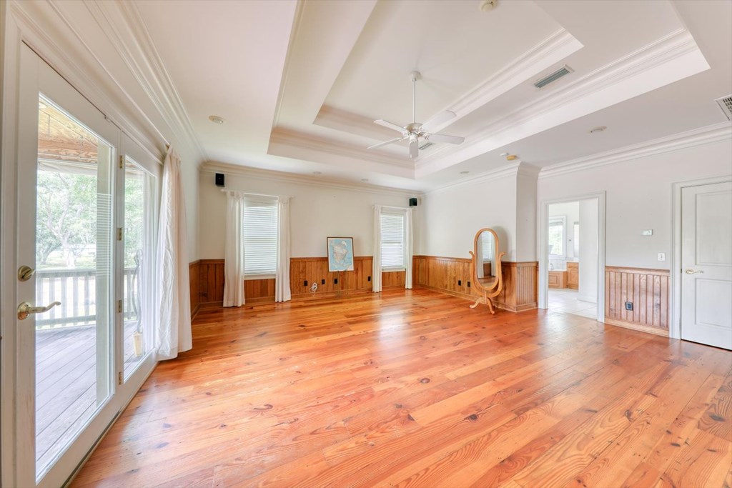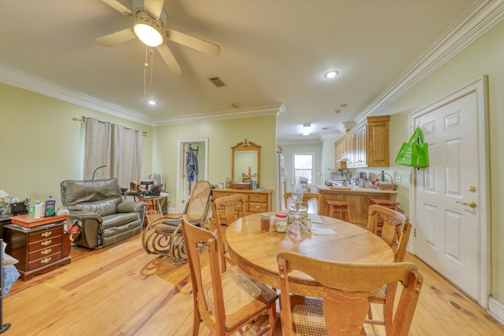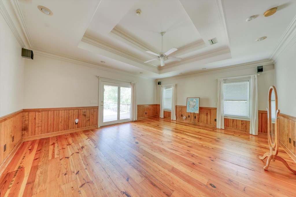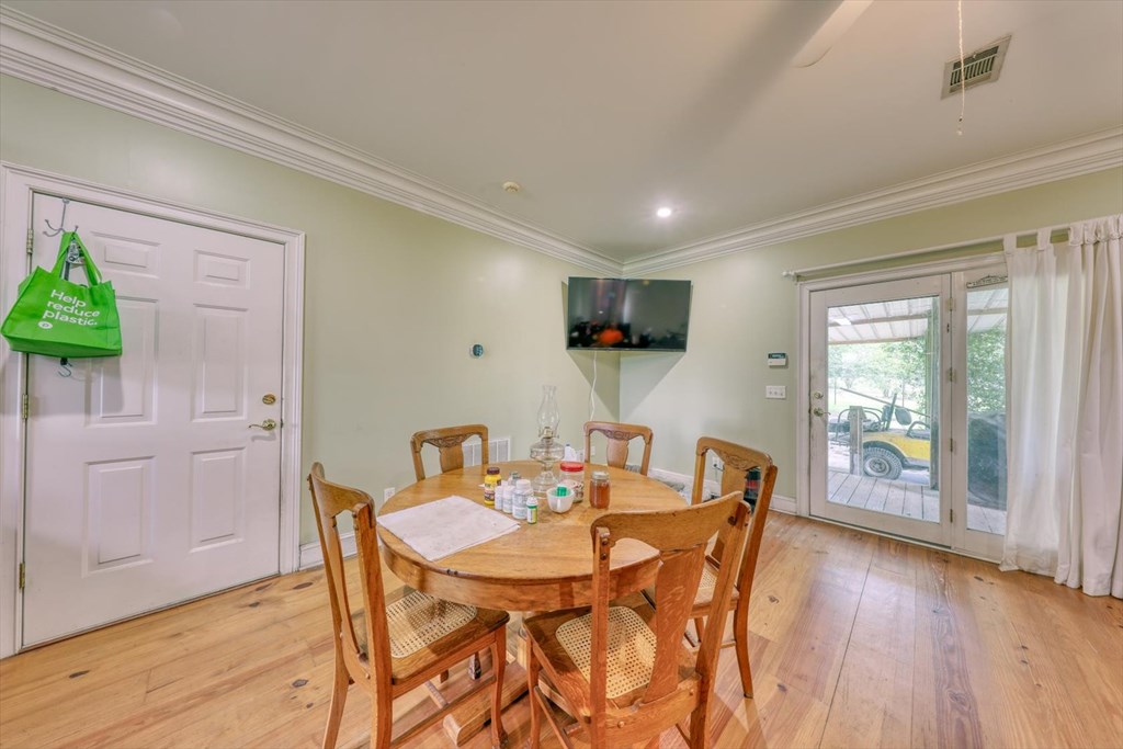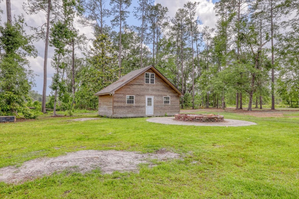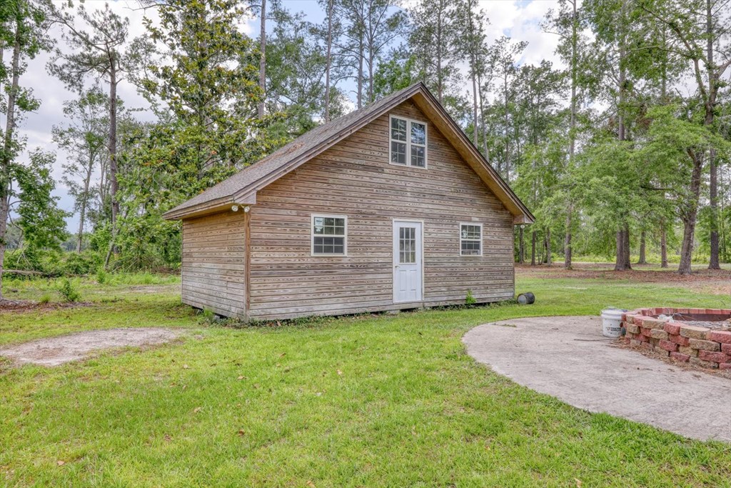 Welcome to 8262 Troupeville Road, a stunning country estate sited on 7.5 acres of gently rolling land shaded by mature oaks and pinesjust minutes from Valdosta Mall. This home seamlessly blends serene rural living with modern refinement, showcasing gleaming heartpine floors, elegant crown molding, and an abundance of natural light at every turn. Ascending to the main level, you'll be greeted by an open great room where vaulted ceilings soar above a wood-burning fireplace detailed with custom moldings. The adjacent kitchen is both beautiful and functional, featuring stainless-steel appliances, a generous island workspace, and abundant cabinetry. Two spacious bedrooms and two-and-a-half baths complete this floor; the luxurious primary suite delights with tray ceilings, crown molding accents, walk-in closet, a soaking tub, and a separate shower. Below, a fully self-contained one-bedroom, one-bath apartment offers its own kitchen, laundry room, and heartpine floorsideal for guests, in-laws, or generating rental income while preserving complete privacy and comfort. Outside, expansive covered porches span the full width of the home, while a massive elevated deck provides panoramic views of the grounds and overlooks a tranquil pond with a 2020 dockperfect for fishing, or simply watching the sunset. Car enthusiasts and hobbyists will appreciate the attached three-car garage with workshop area, plus a detached one-car garage for overflow storage. A large barn stands ready to shelter equipment, ATVs, or an RV, and a second storage barncomplete with a full bathawaits conversion into a guest house or private studio, with plumbing and electrical already in place. Conveniently located near Valdosta State University, top-rated schools, shopping, parks, and I-75 for easy travel to Jacksonville, Gainesville, or Atlanta, 8262 Troupeville offers an unparalleled opportunity to enjoy luxurious country living without sacrificing modern comforts. Schedule your private tour today.