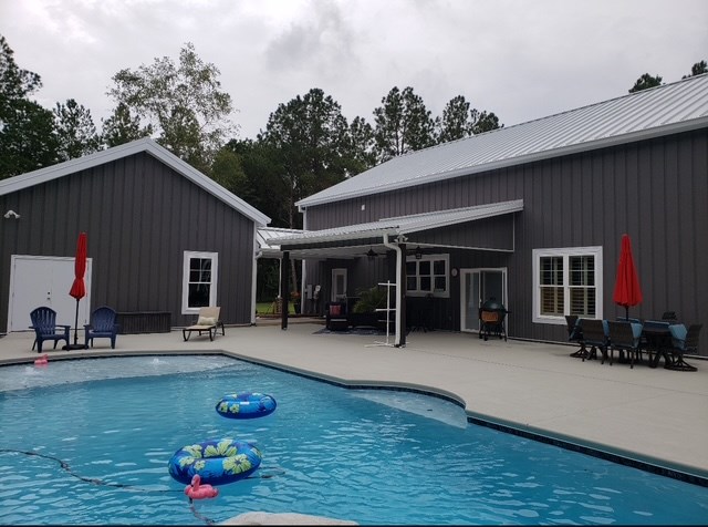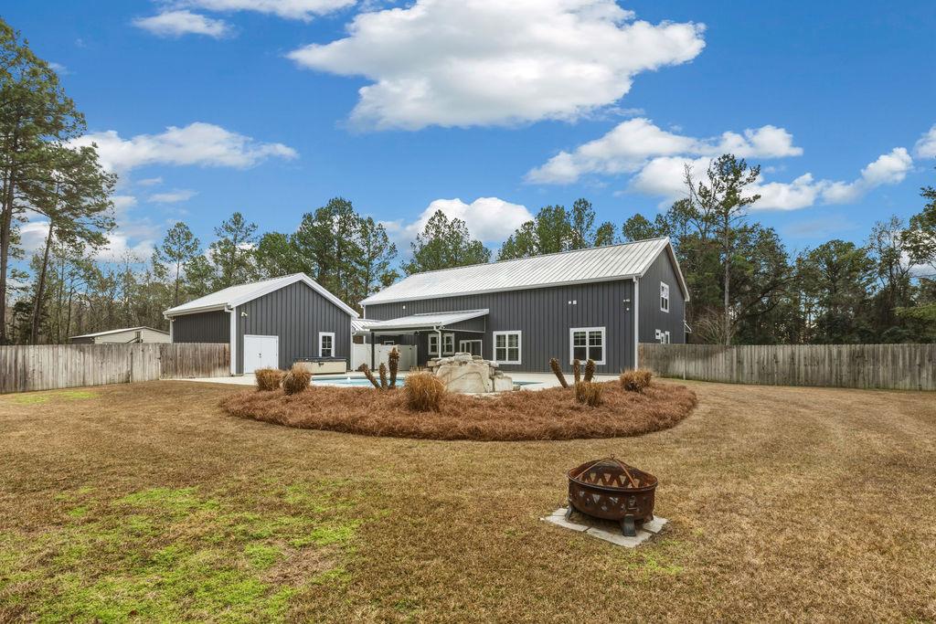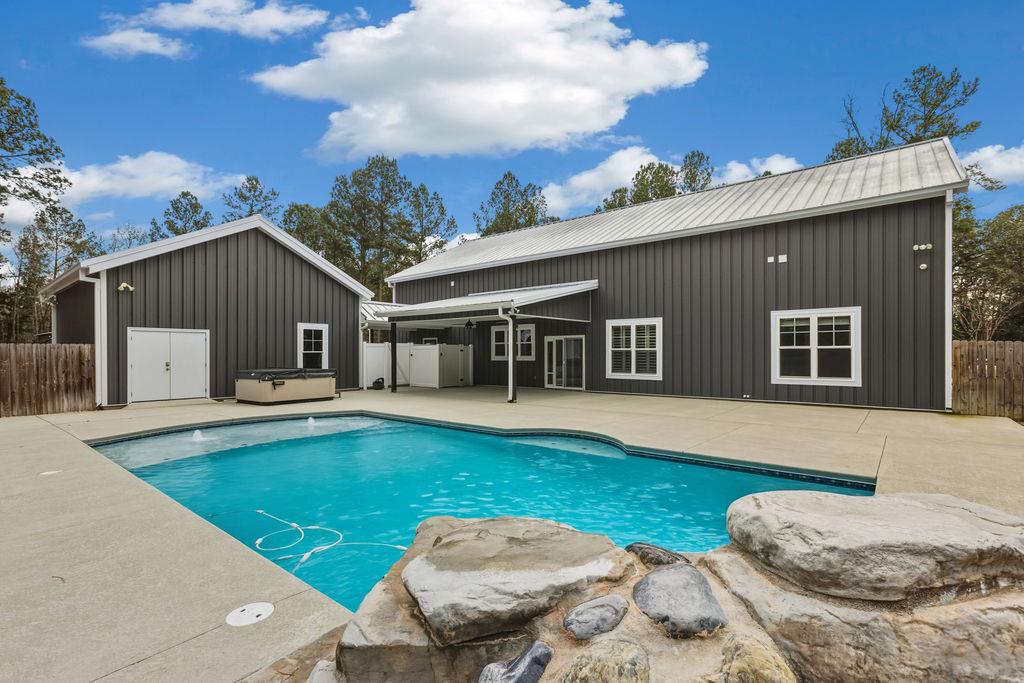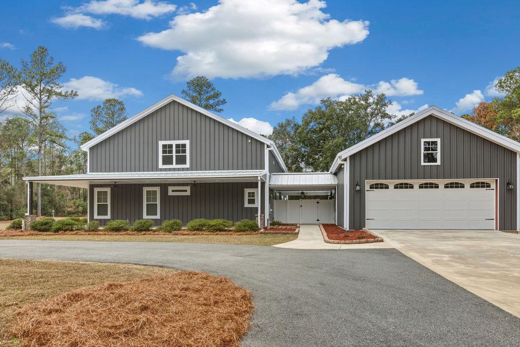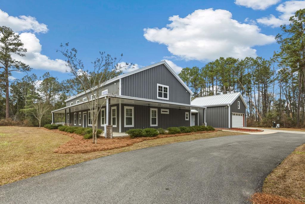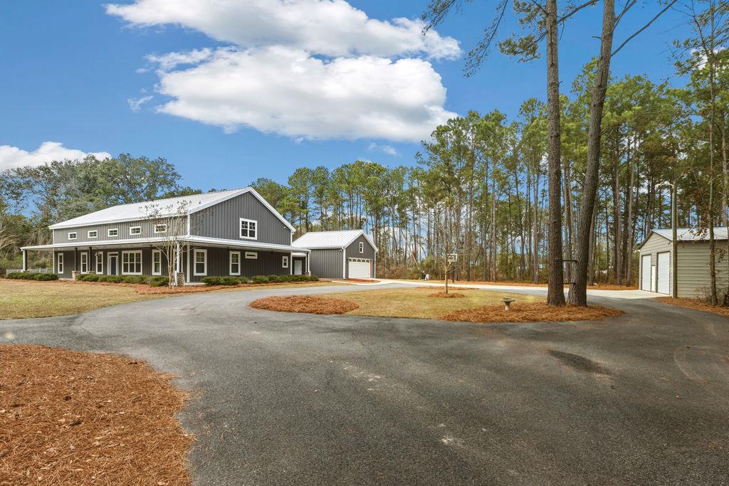 Stunning Custom Barndominium Luxury, Space & Privacy! This one-of-a-kind property offers the perfect blend of rustic charm and modern elegance. Step into a gorgeous eat-in kitchen featuring granite countertops, abundant custom cabinetry with accent lighting, and a spacious pantry truly the heart of the home. The large primary suite is a private retreat with a beautifully designed walk-in shower showcasing two shower heads, unique custom tile, and built-ins. The thoughtful floor plan includes Jack & Jill guest bedrooms, an additional guest room with its own ensuite bath, and a 5th bedroom that could easily serve as a home office. Upstairs, enjoy a large loft playroom overlooking the den. The spacious den features a cozy fireplace and opens to a formal dining area perfect for entertaining. This home is extremely well insulated, offering impressively low power bills year-round. Outdoor living is just as exceptional! Relax in the in-ground pool complete with a charming gondola feature, a premium Bullfrog spa, covered porch, and expansive pool decking. The backyard is fully fenced and beautifully landscaped for privacy and enjoyment. A 2-car garage with storage, plus an additional 25x30 wired garage/workshop with mini split, provides plenty of room for hobbies, vehicles, or toys. There's even an RV pad with electrical hook up and septic tank, circular driveway, and private gated entrance. Situated on a peaceful corner lot outlined by mature trees, this property feels private and secluded while still being incredibly convenient to Hahira and Valdosta, and just minutes from I-75. A rare find with space, style, and endless amenities don't miss this incredible opportunity!