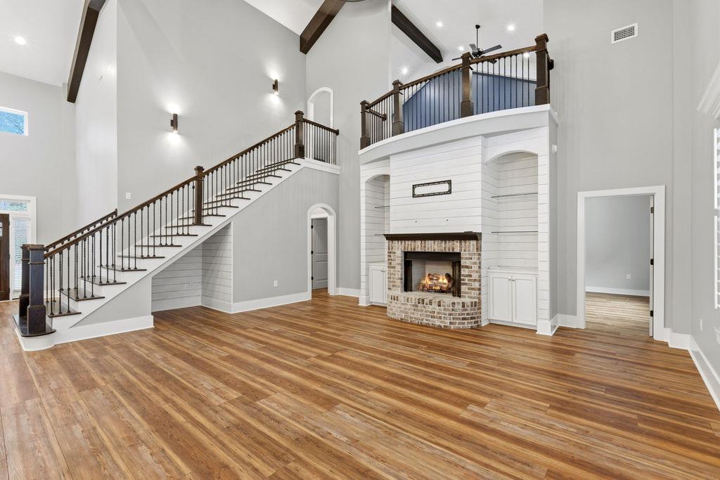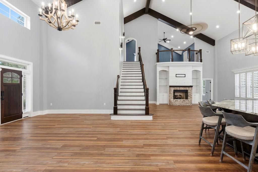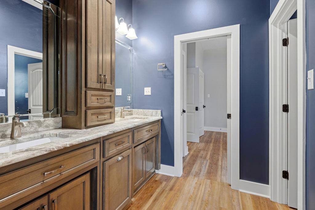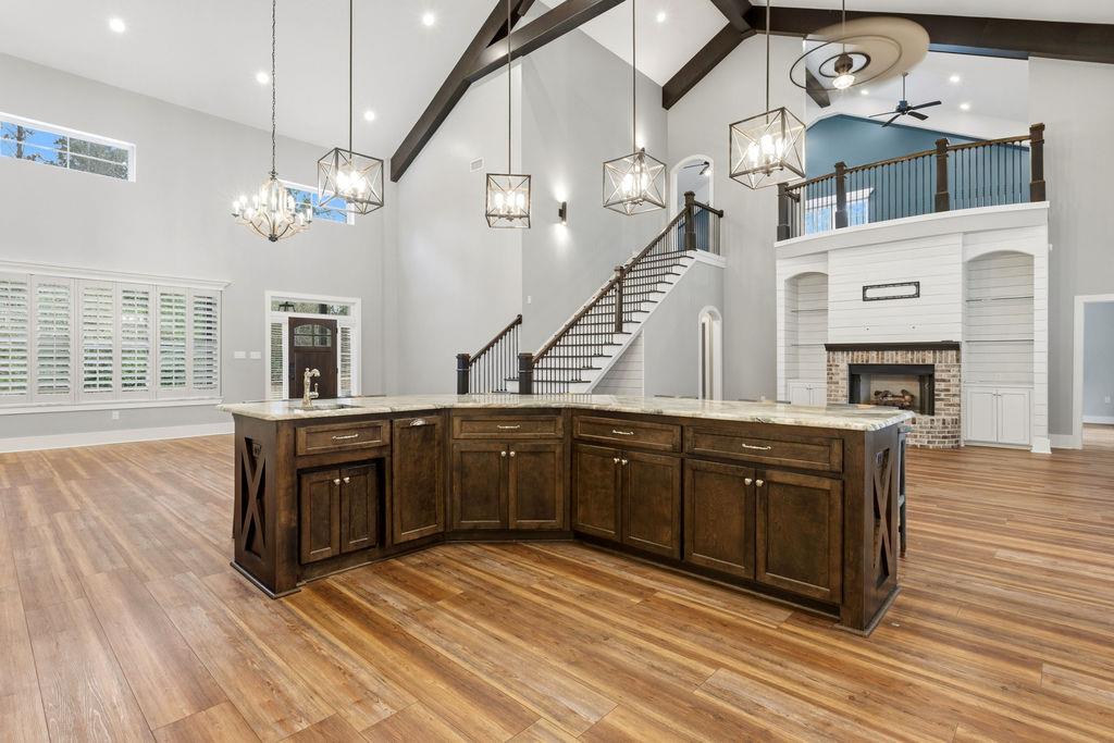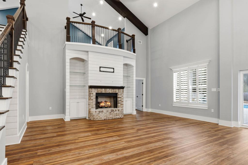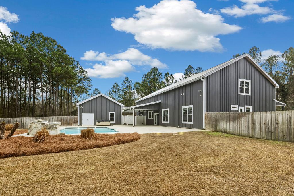 Stunning Custom Barndominium Luxury, Space & Privacy! This one-of-a-kind property offers the perfect blend of rustic charm and modern elegance. Step into a gorgeous eat-in kitchen featuring granite countertops, abundant custom cabinetry with accent lighting, and a spacious pantry truly the heart of the home. The large primary suite is a private retreat with a beautifully designed walk-in shower showcasing two shower heads, unique custom tile, and built-ins. The thoughtful floor plan includes Jack & Jill guest bedrooms, an additional guest room with its own ensuite bath, and a 5th bedroom that could easily serve as a home office. Upstairs, enjoy a large loft playroom overlooking the den. The spacious den features a cozy fireplace and opens to a formal dining area perfect for entertaining. This home is extremely well insulated, offering impressively low power bills year-round. Outdoor living is just as exceptional! Relax in the in-ground pool complete with a charming gondola feature, a premium Bullfrog spa, covered porch, and expansive pool decking. The backyard is fully fenced and beautifully landscaped for privacy and enjoyment. A 2-car garage with storage, plus an additional 25x30 wired garage/workshop with mini split, provides plenty of room for hobbies, vehicles, or toys. There's even an RV pad with electrical hook up and septic tank, circular driveway, and private gated entrance. Situated on a peaceful corner lot outlined by mature trees, this property feels private and secluded while still being incredibly convenient to Hahira and Valdosta, and just minutes from I-75. A rare find with space, style, and endless amenities don't miss this incredible opportunity!